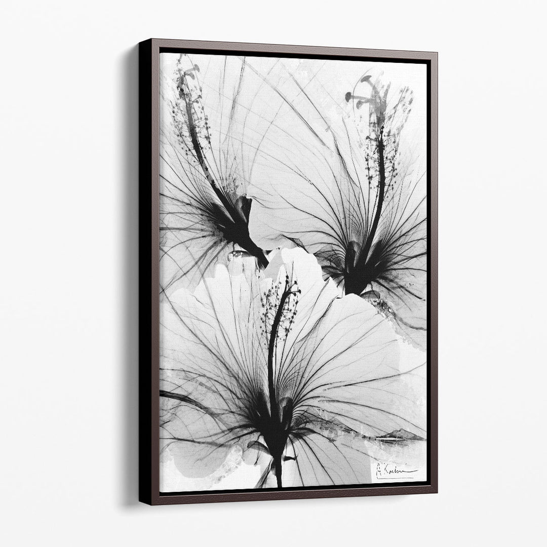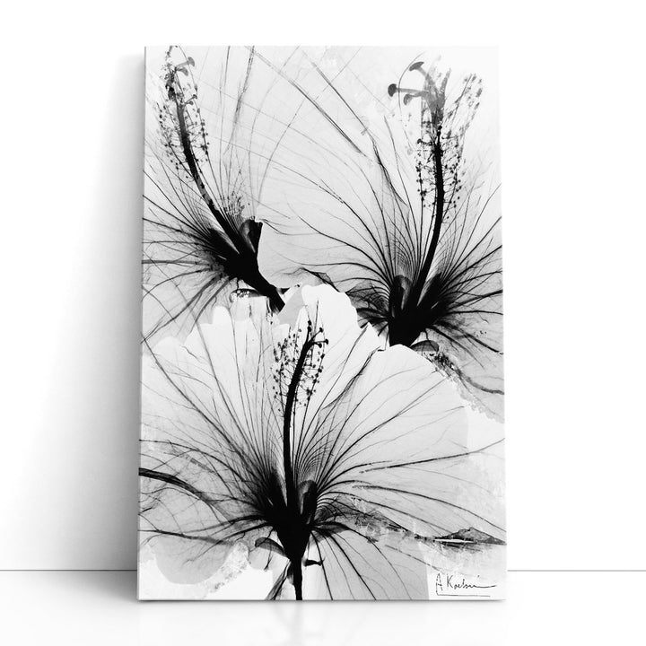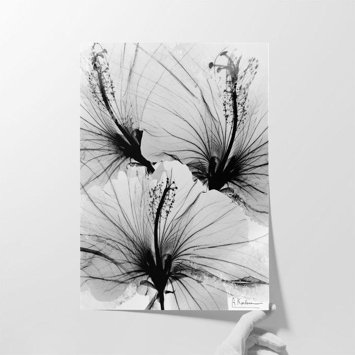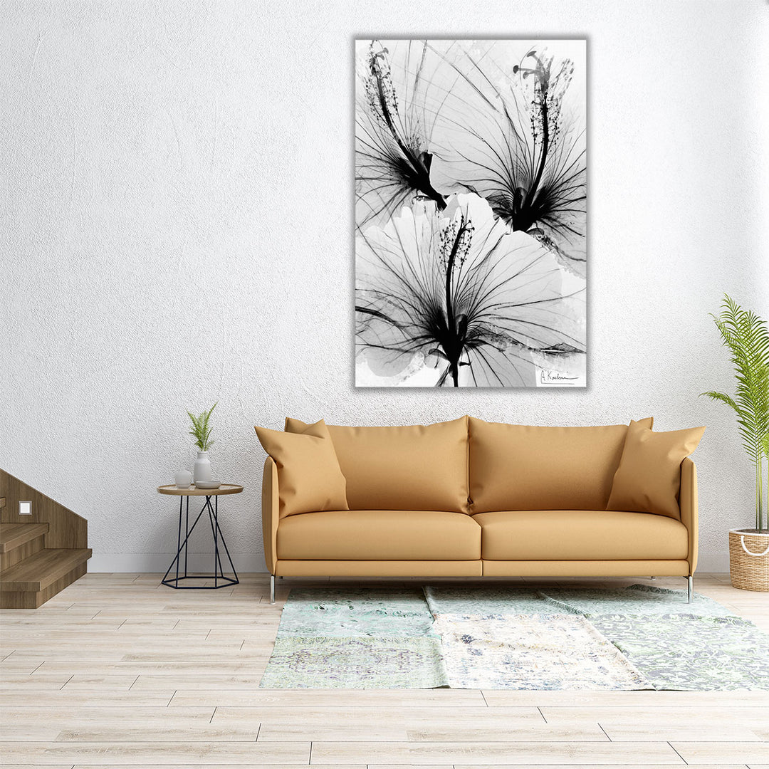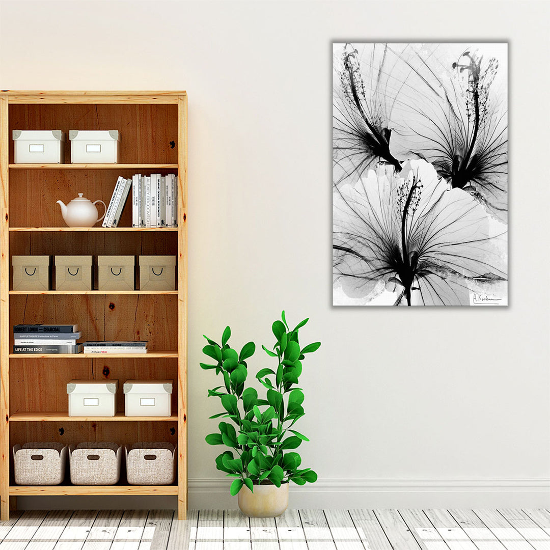 This abstract composition features a striking black and white depiction of a flower, blending modern design with timeless elegance.