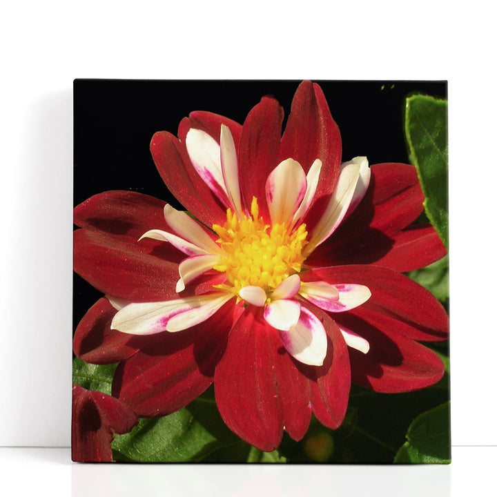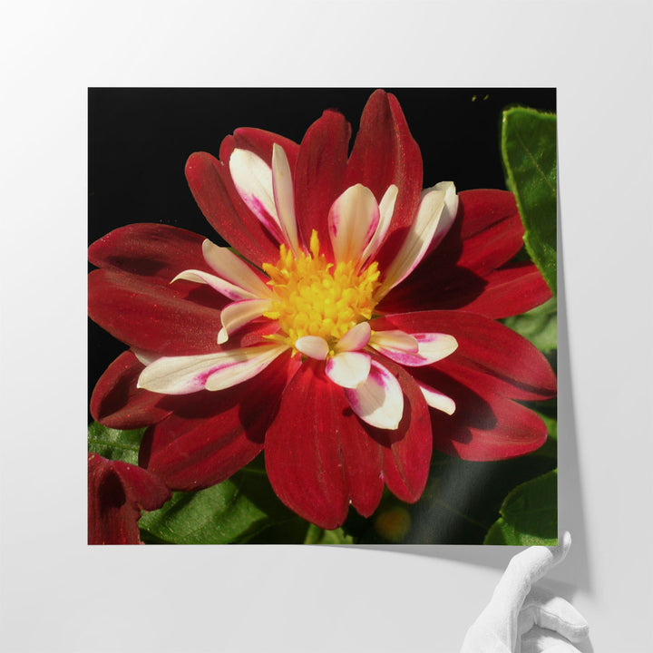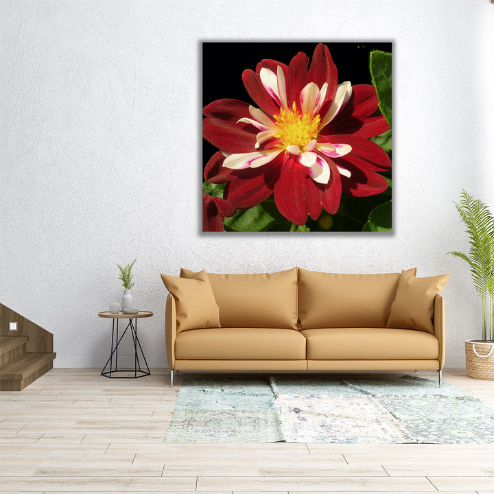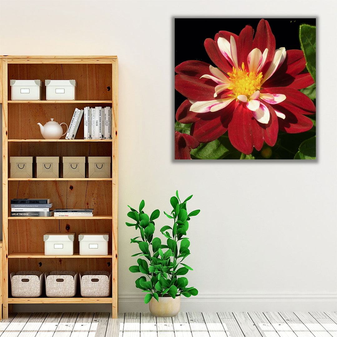A vibrant red dahlia flower captured in this stunning artwork, bringing elegance and bold color to any space.