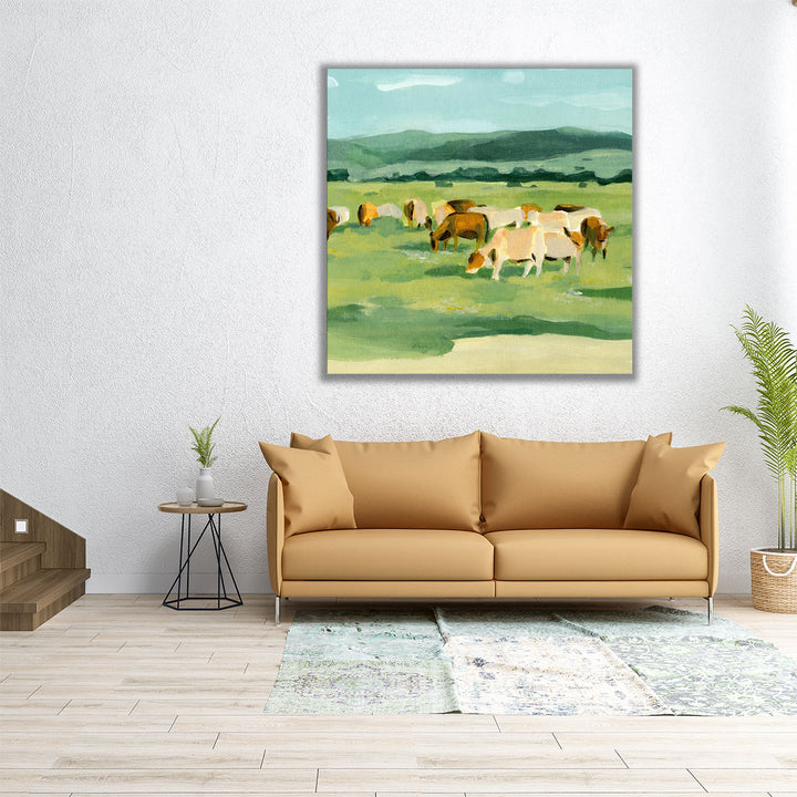 Rural Country Artwork, Farm Animal Canvas Prints, Large Landscape Paintings for Farmhouse | Rural Fields I