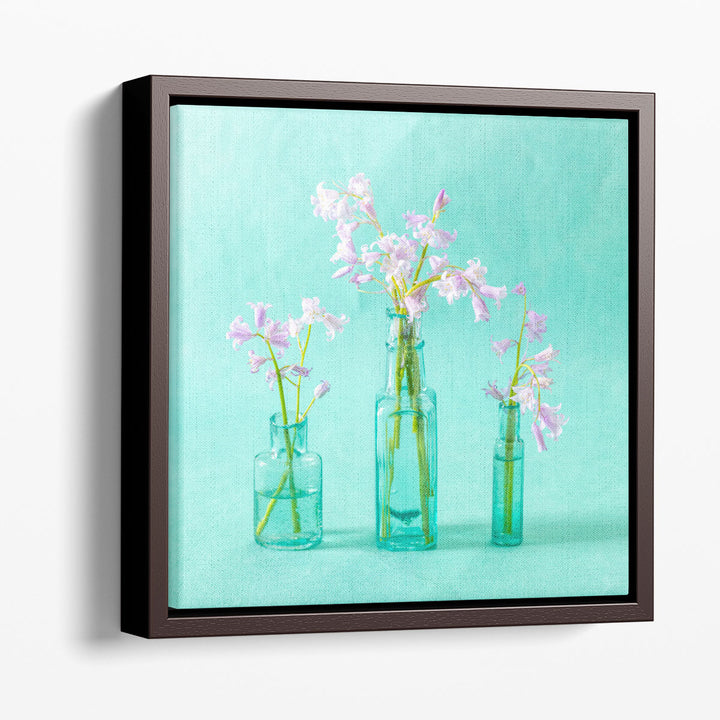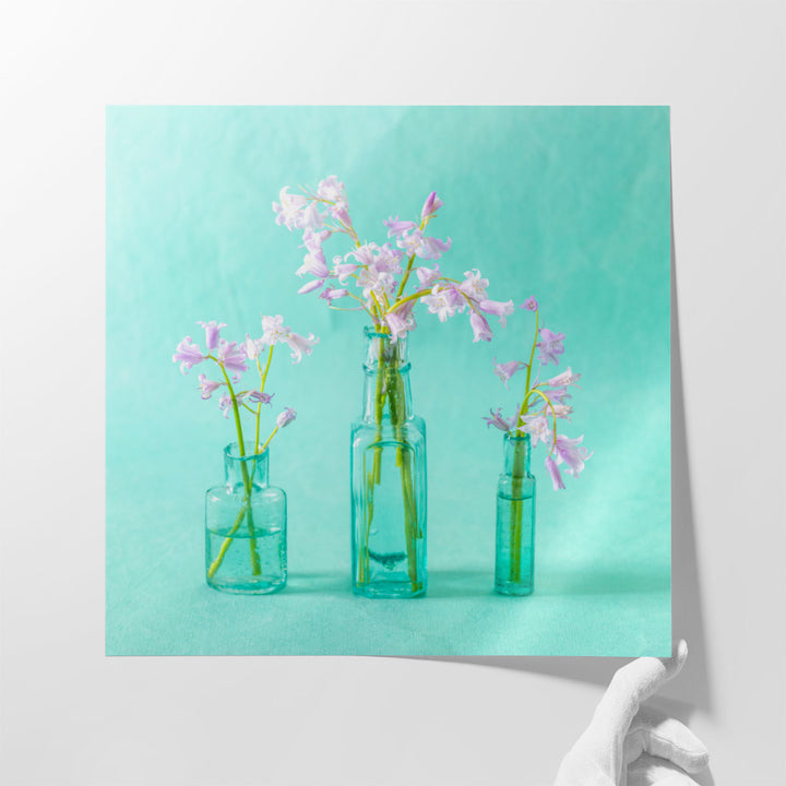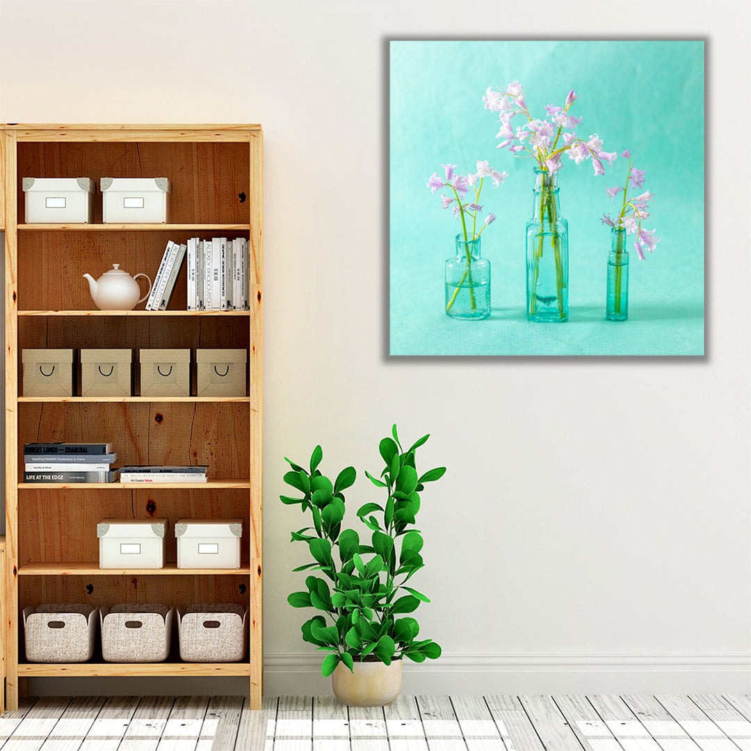 Bluebells in Glass Bottles - Canvas Print Wall Art