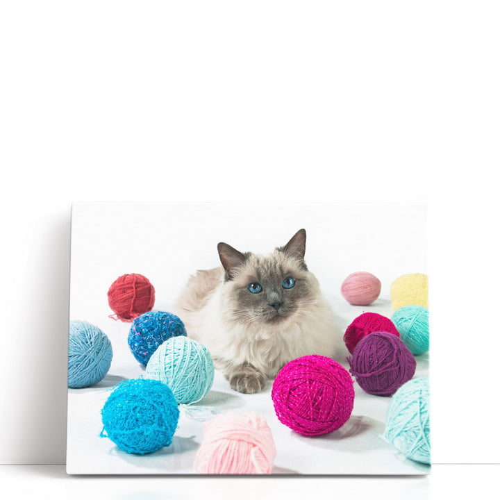 Cat With Balls Of Wool - Canvas Print Wall Art