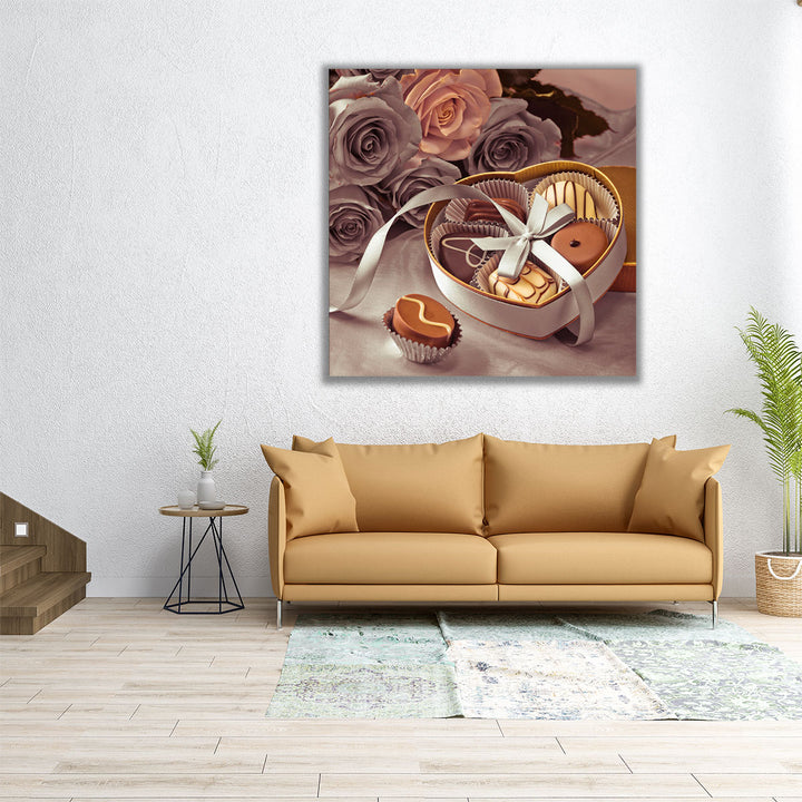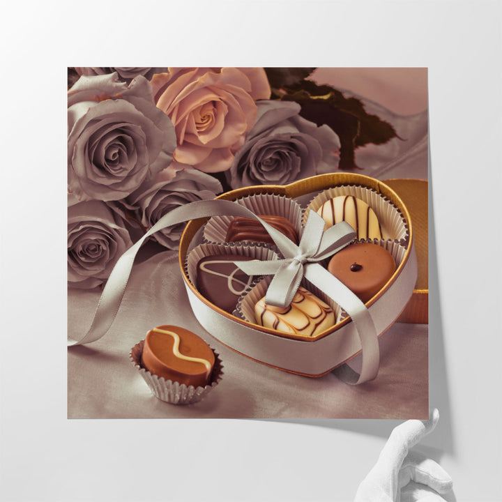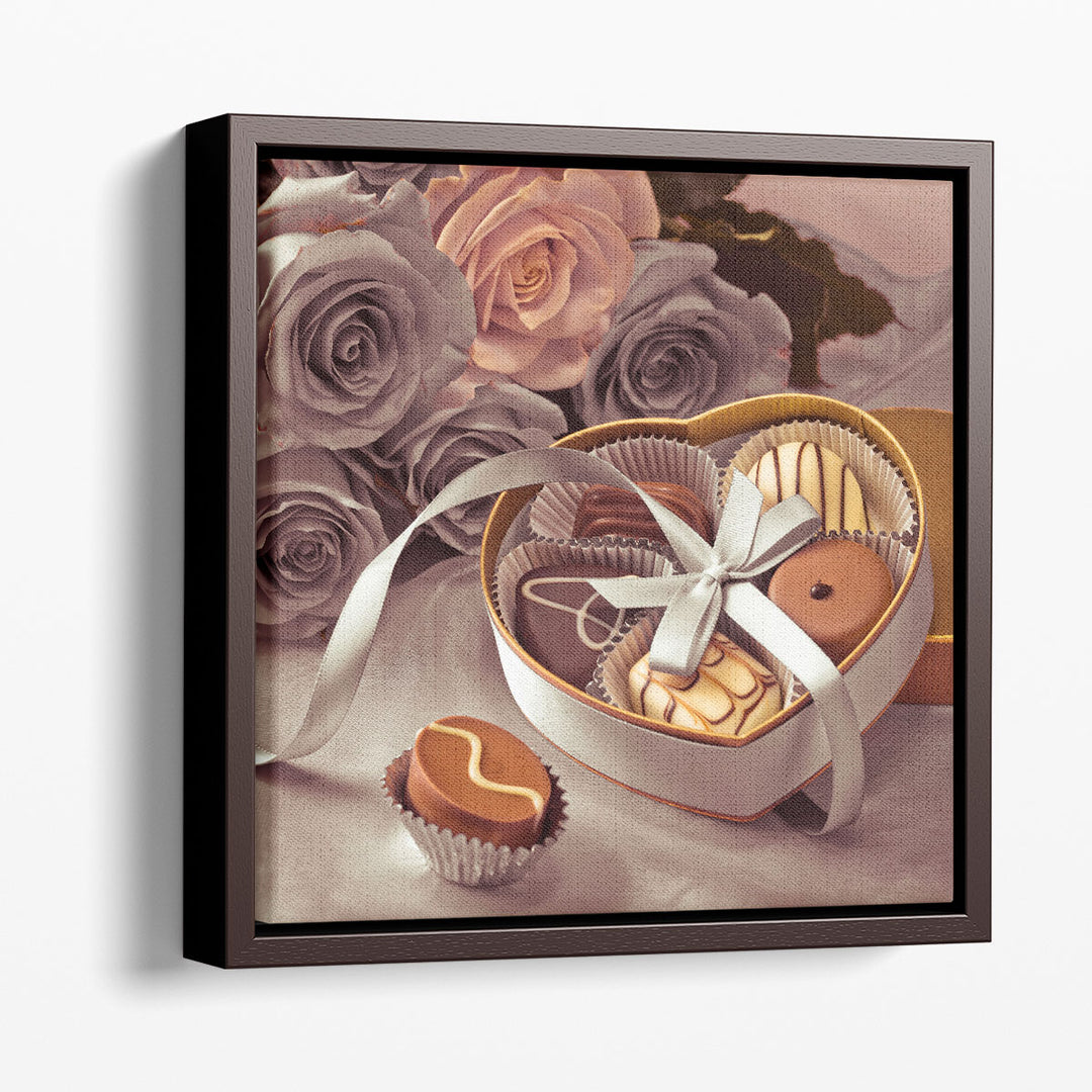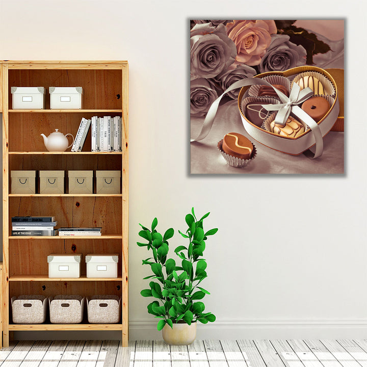 Chocolate Gift Box with Roses 1 - Canvas Print Wall Art
