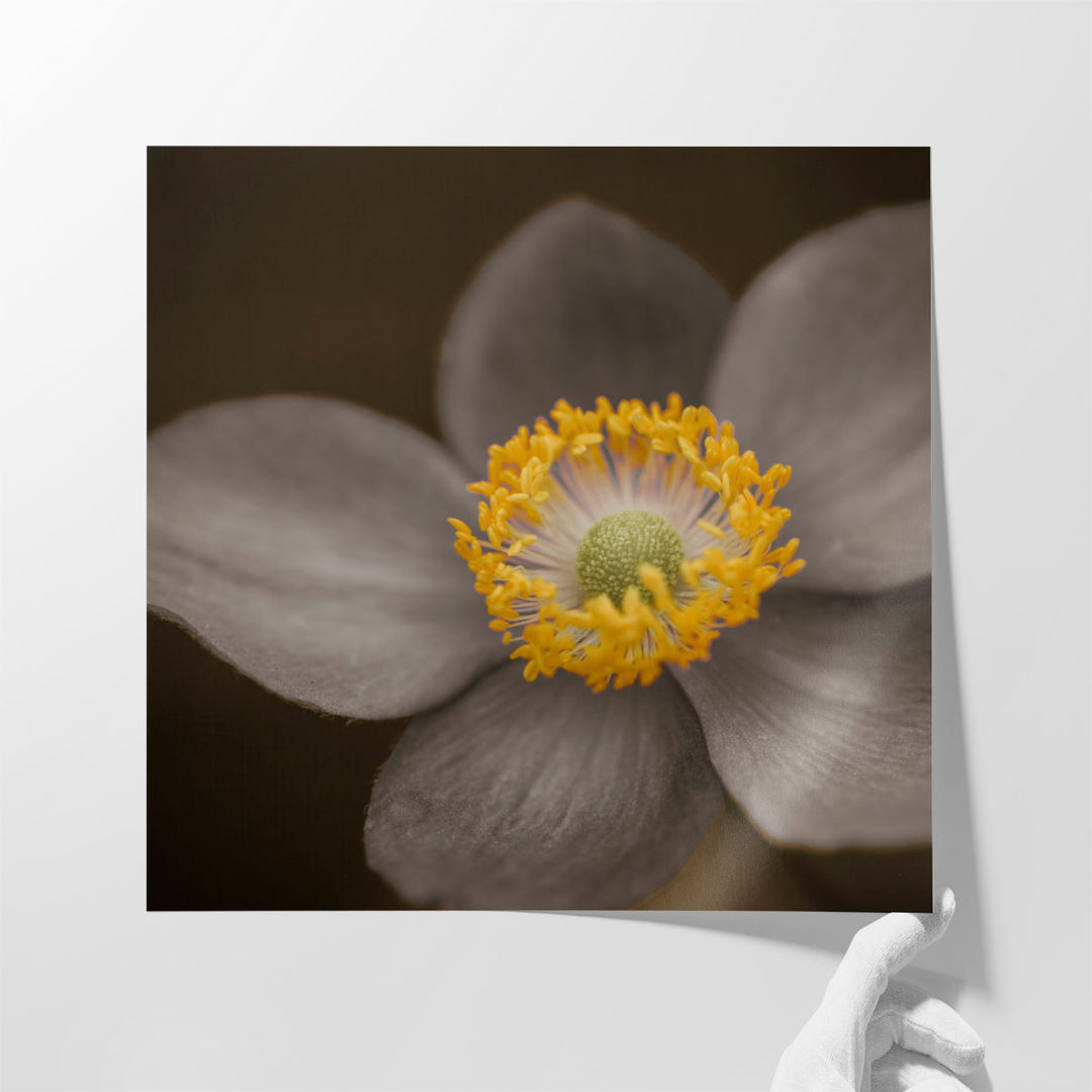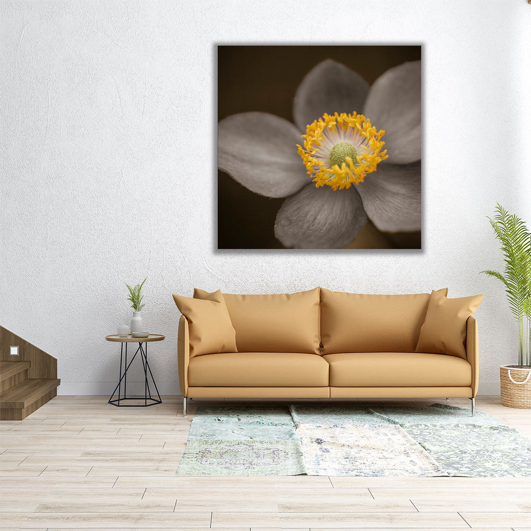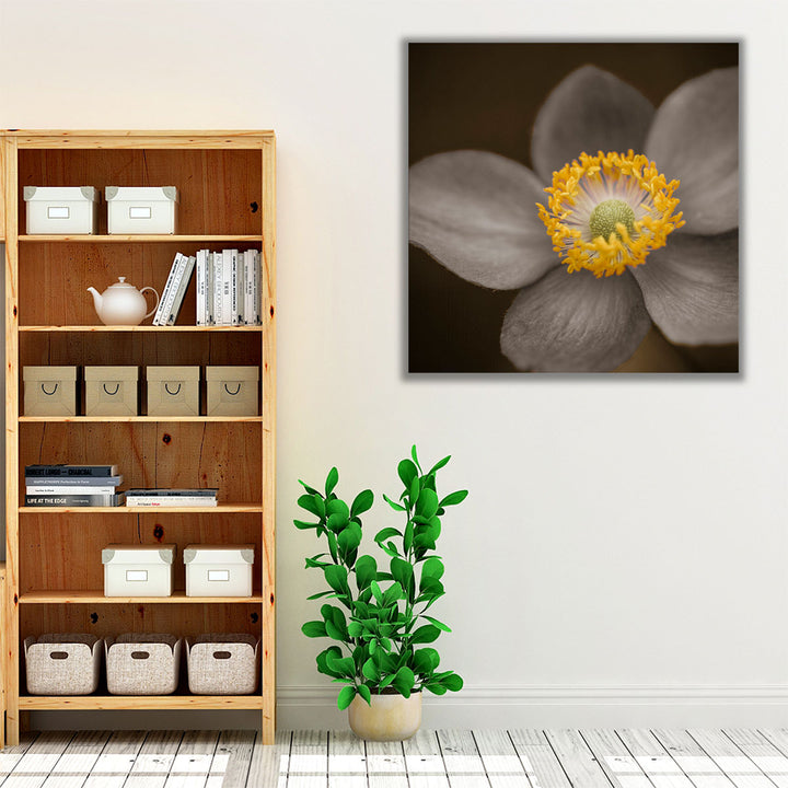 This artwork showcases delicate anemone flowers in shades of yellow and gray, creating a soothing and elegant composition that enhances any space.