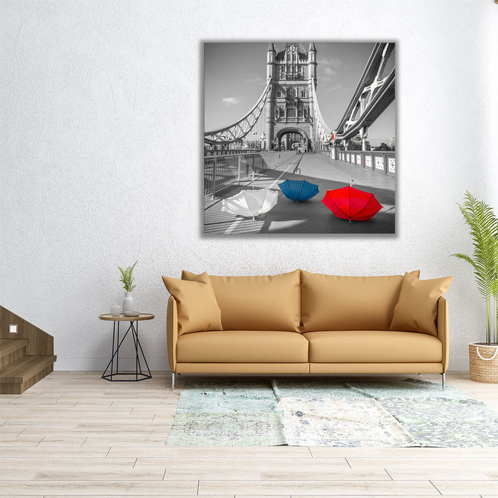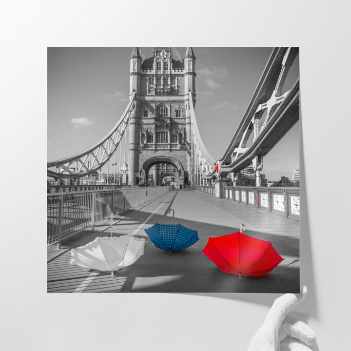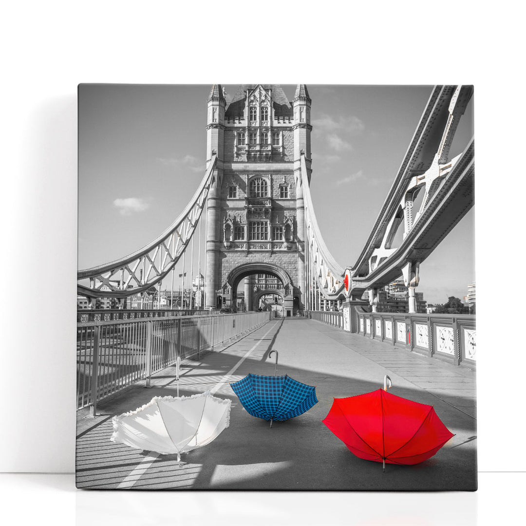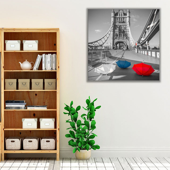 Colorful Umbrellas on Tower bridge - Canvas Print Wall Art