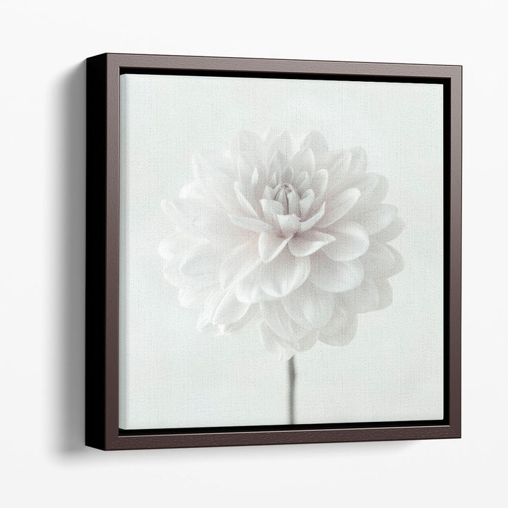 This stunning artwork features a delicate white dahlia, capturing its intricate petals and soft elegance in a timeless botanical display.