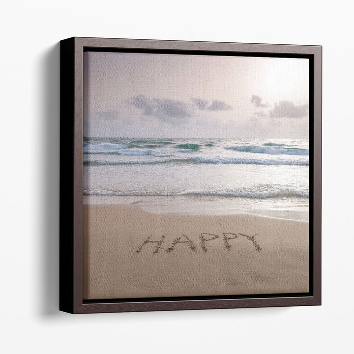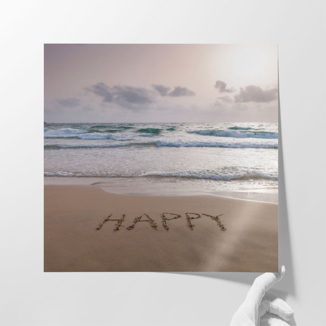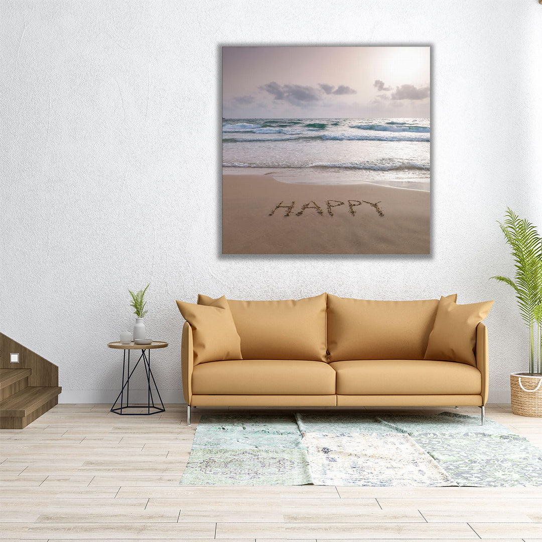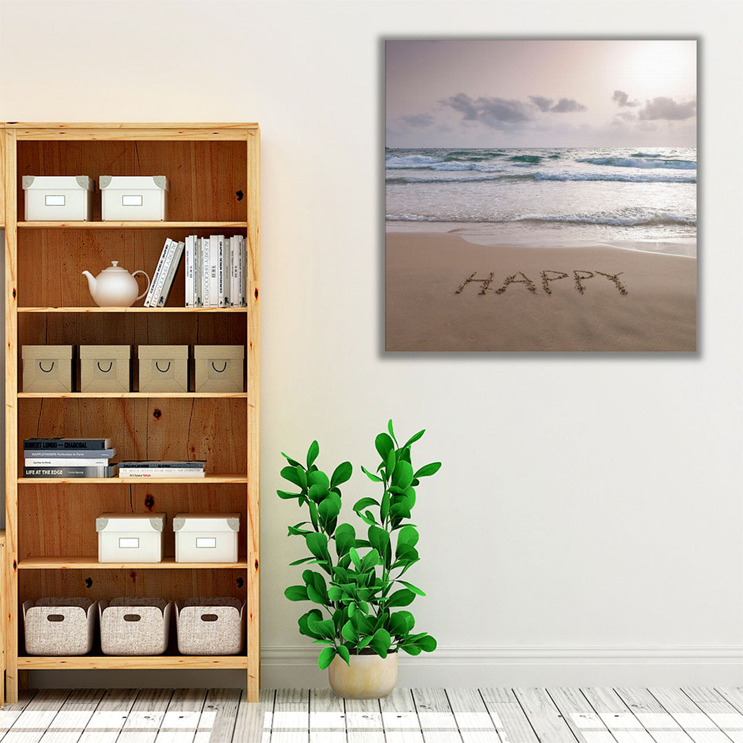 Happy Written on Beach Canvas Wall Art by Assaf Frank.