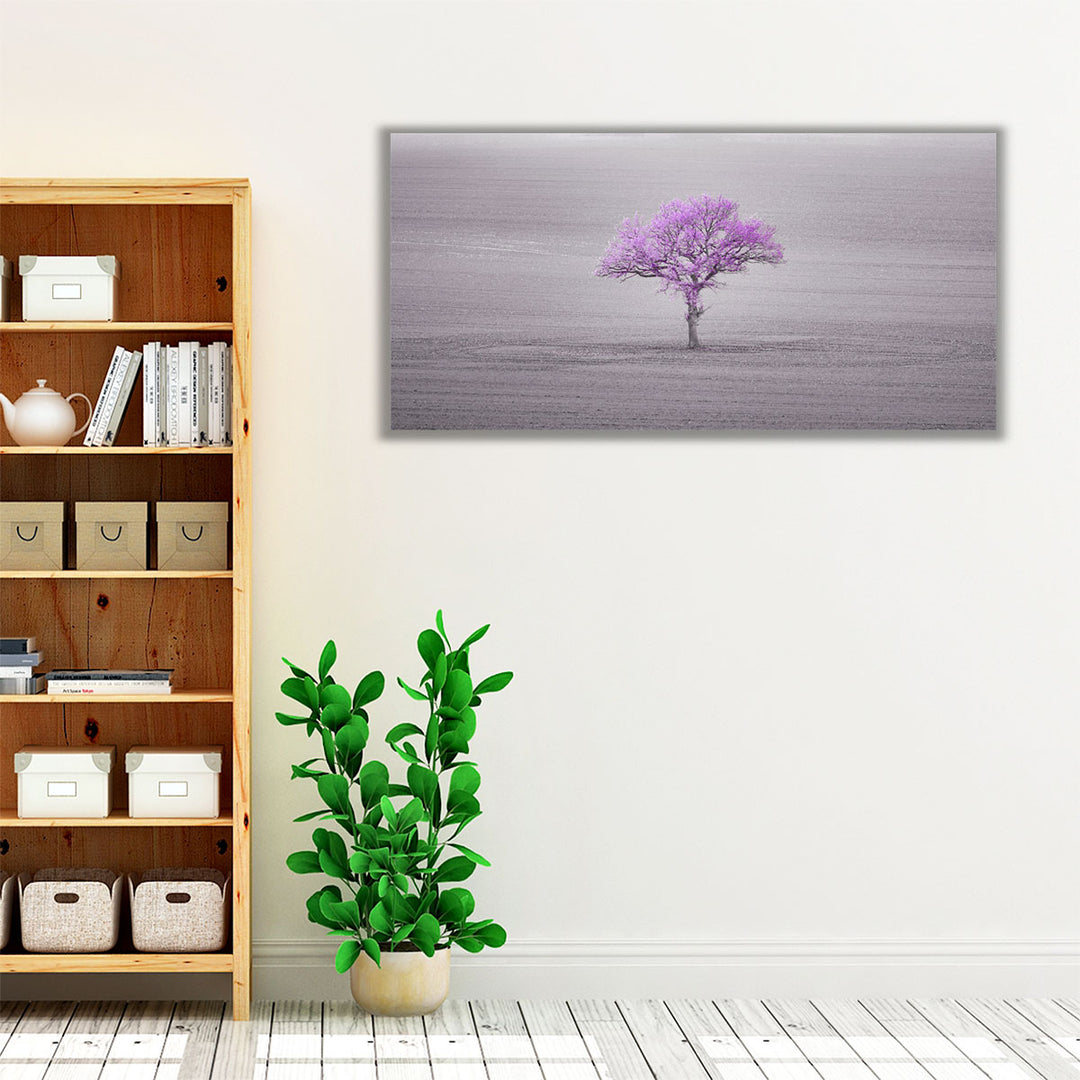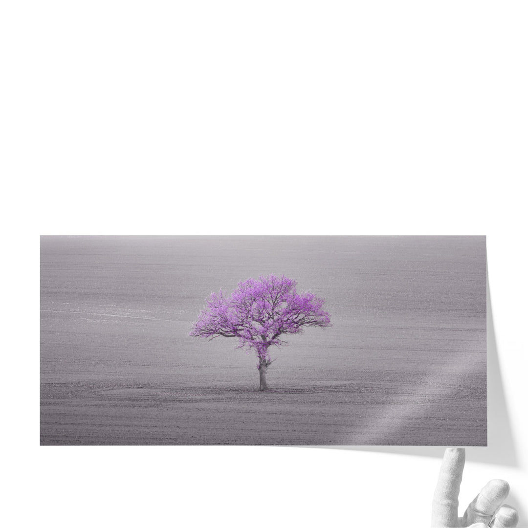 A minimalist composition unfolds with a lone tree in a serene purple hue, capturing the delicate essence of floral beauty and nature.
