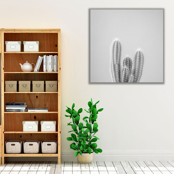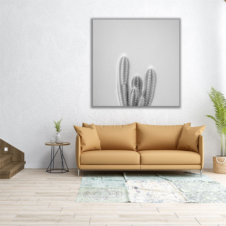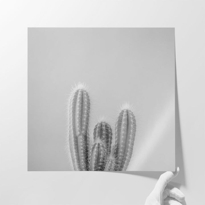 A striking black and white artwork showcasing the intricate details of the Micranthocereus Estevesii Cactus, bringing a modern and elegant touch to any space.