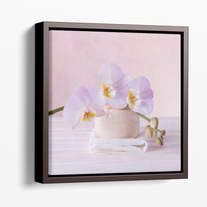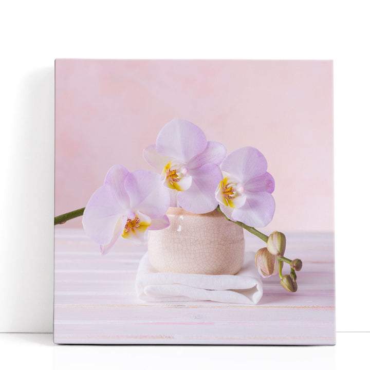 This stunning artwork showcases vibrant pink orchids, bringing a touch of elegance and natural beauty to any space.