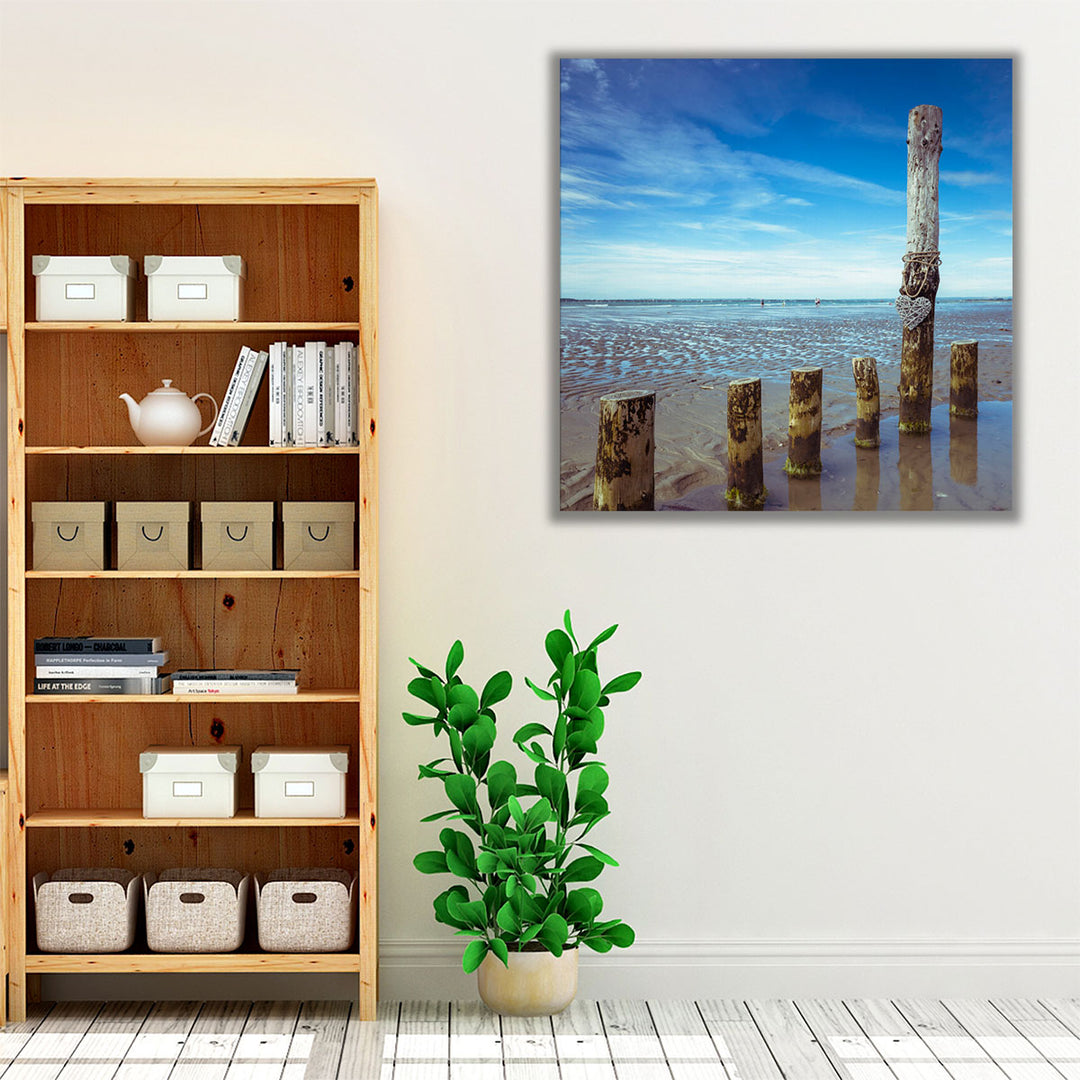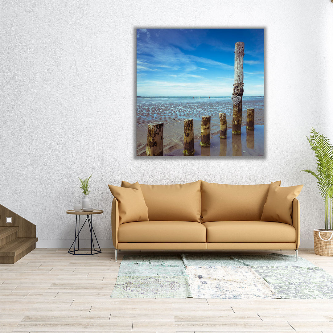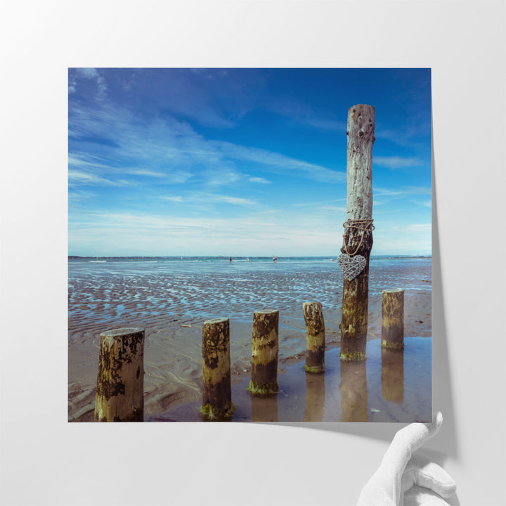 Wooden Groynes on the Beach - Canvas Print Wall Art