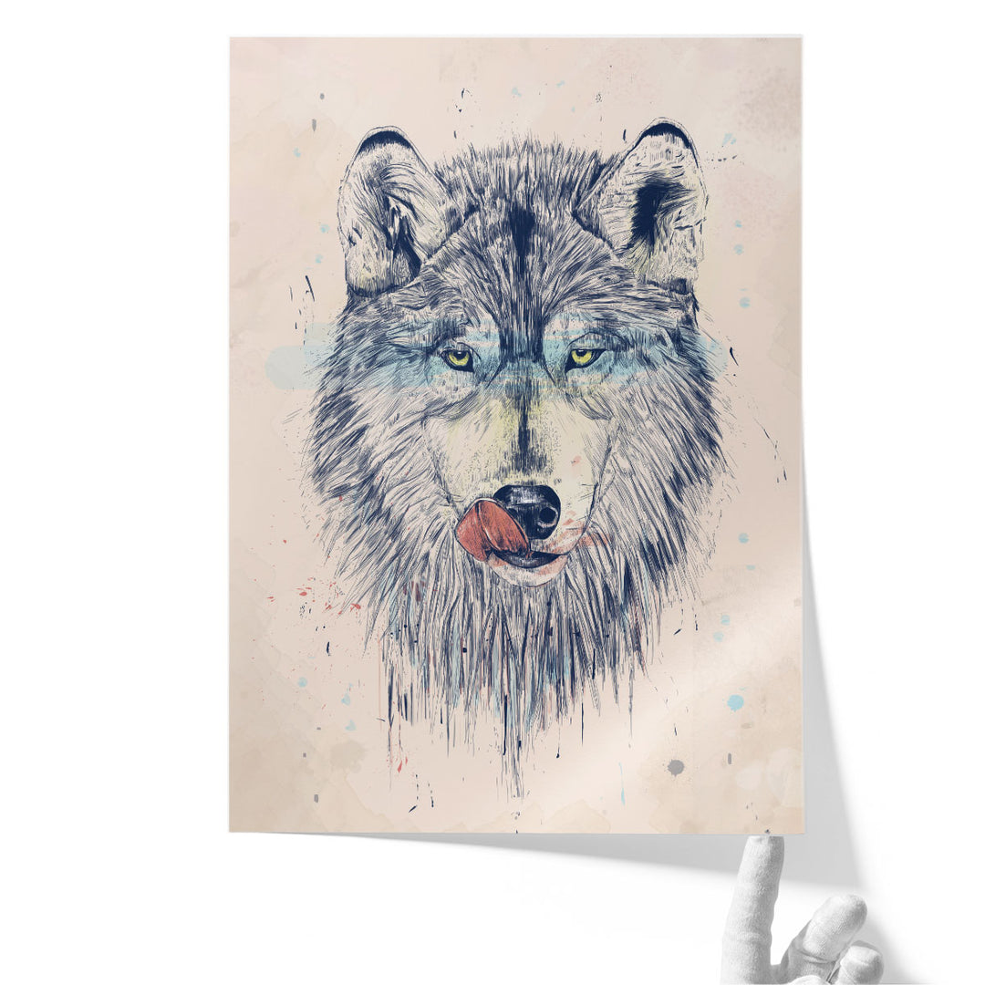 Boldly portraying a majestic blue-toned wolf, the contemporary animal artwork adds a fierce yet refined edge to modern interiors.