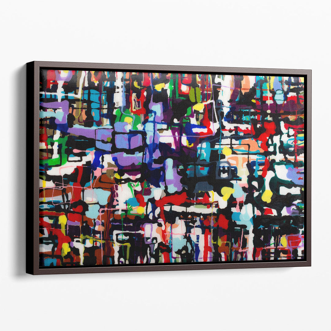 This abstract artwork bursts with vibrant colors, blending fluid forms and bold hues to create a visually dynamic and expressive composition.