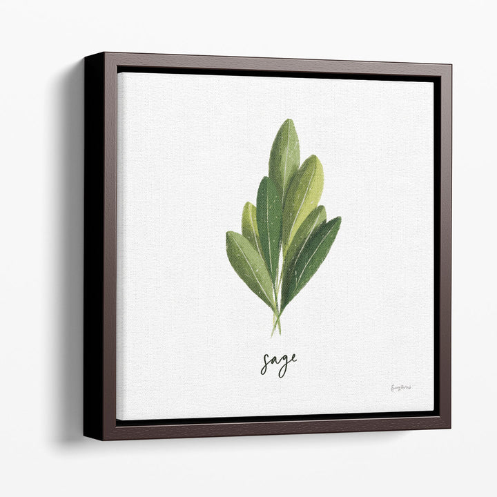 This captivating piece showcases delicate sage leaves against a bold black background, accented by elegant "Sage" text for a striking visual.