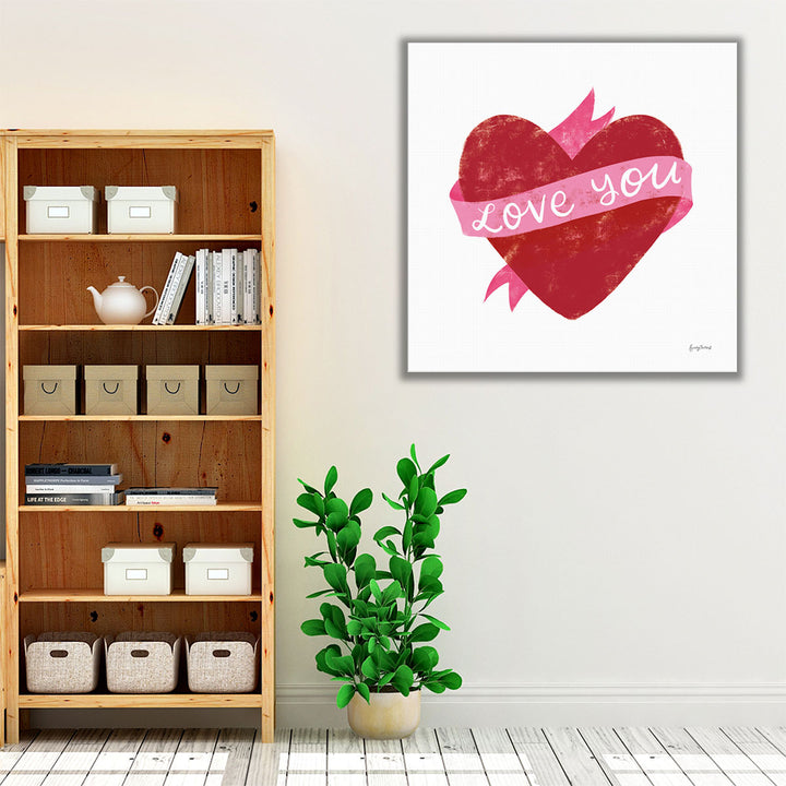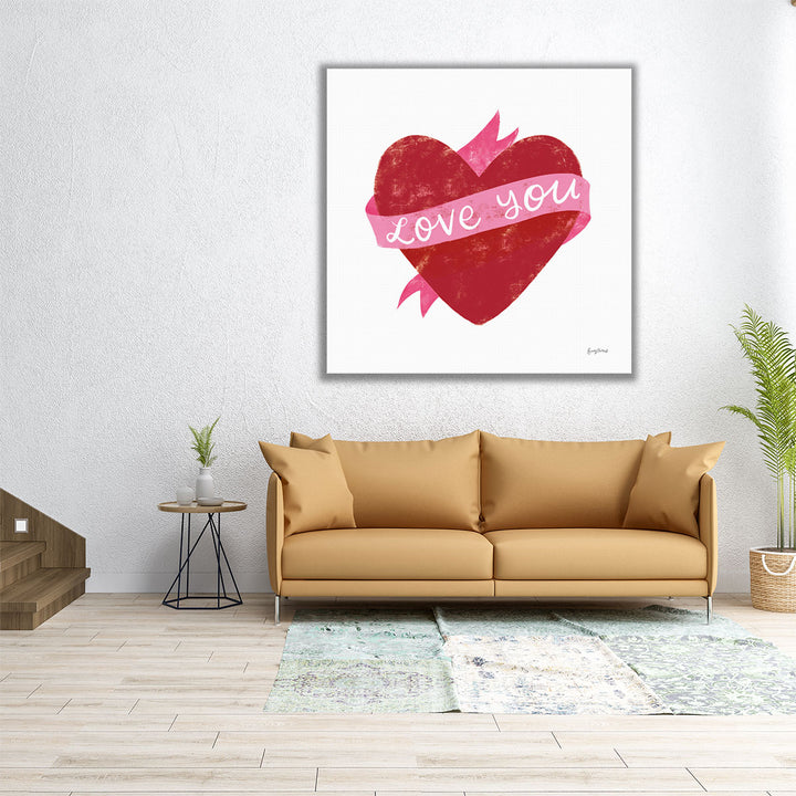 This heartwarming piece showcases a vibrant red heart with "Love You" text, perfect for adding a romantic and affectionate touch to any space.
