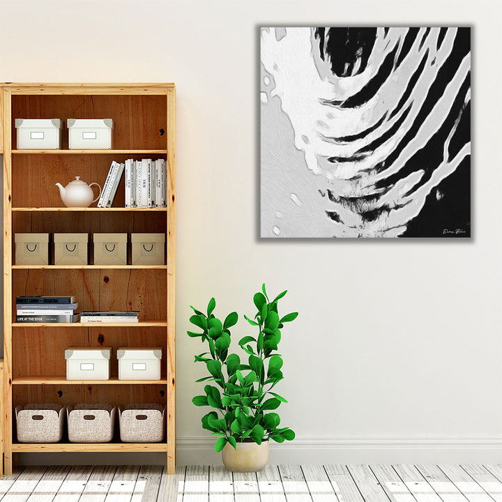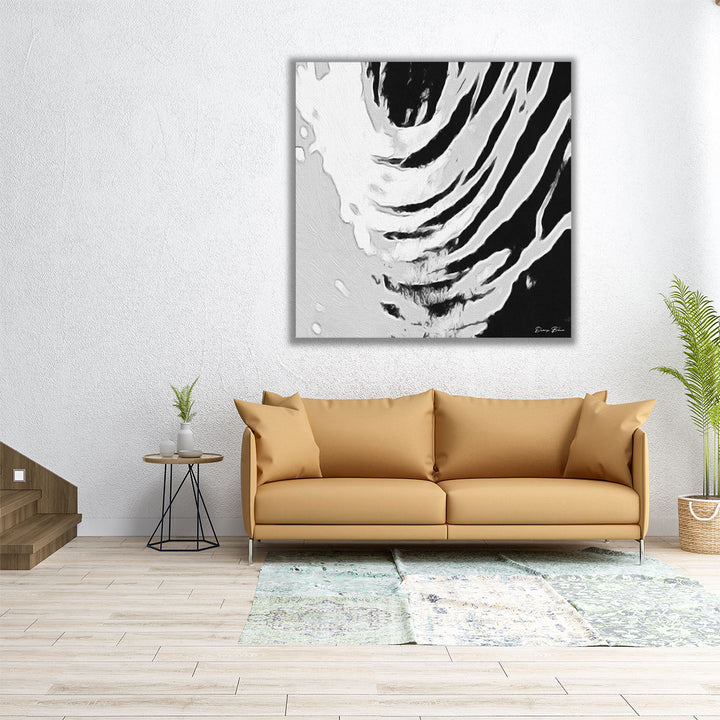 A bold abstract piece in black, white, and gray, capturing the essence of minimalist expression.