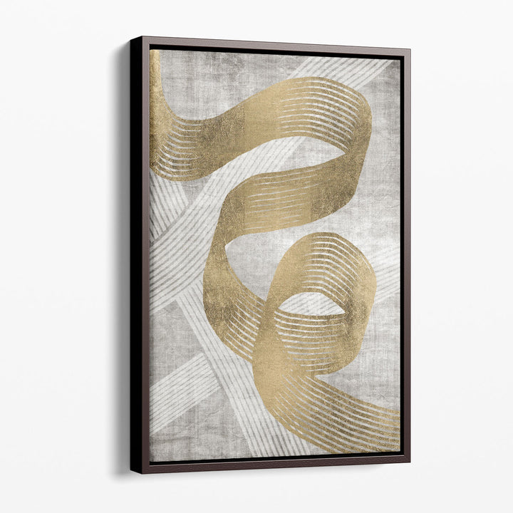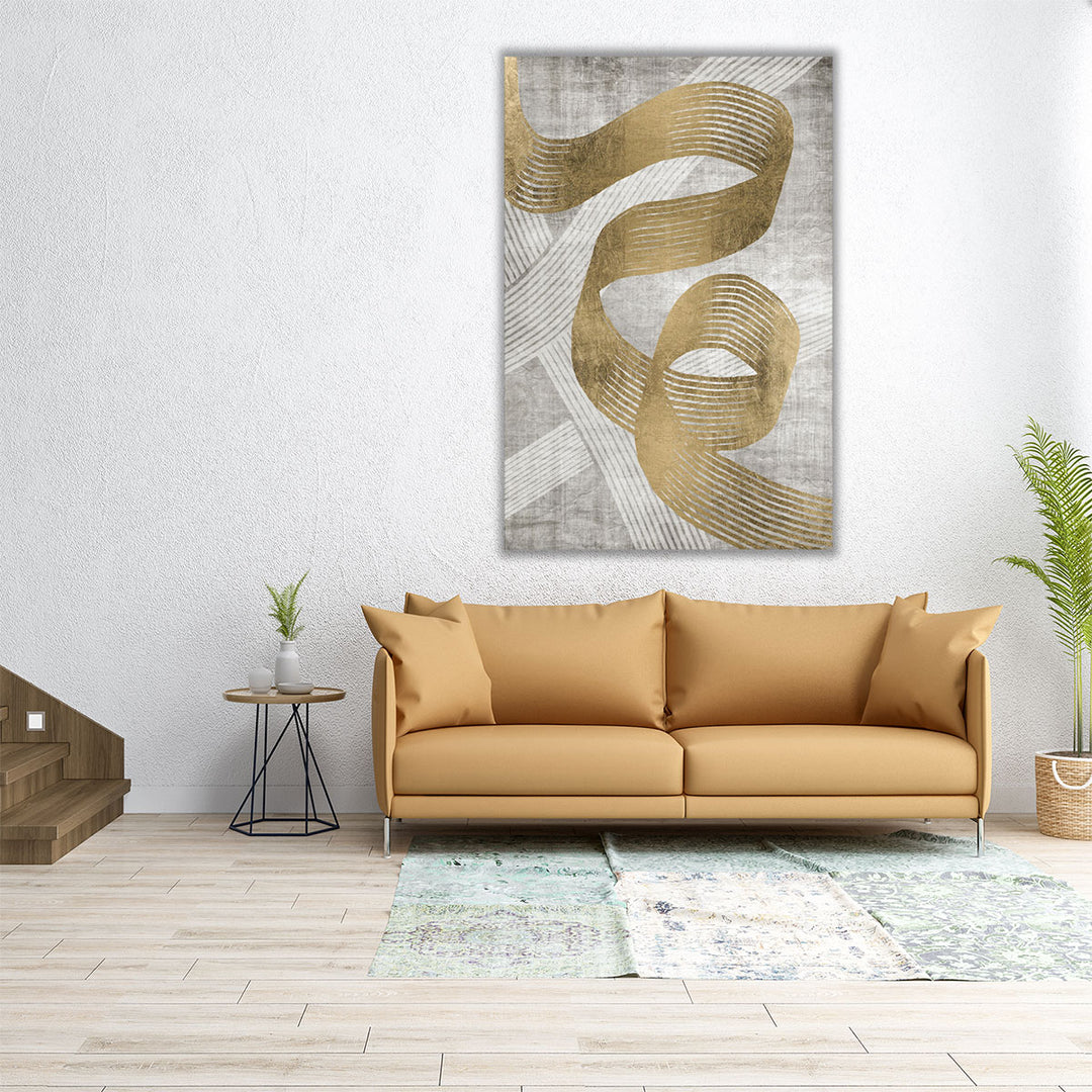 Abstract Gold Wall Decor, Ribbon Painting for Home Decoration, 24x36 Minimalist Framed Art for Entryway | Golden Ribbon 1