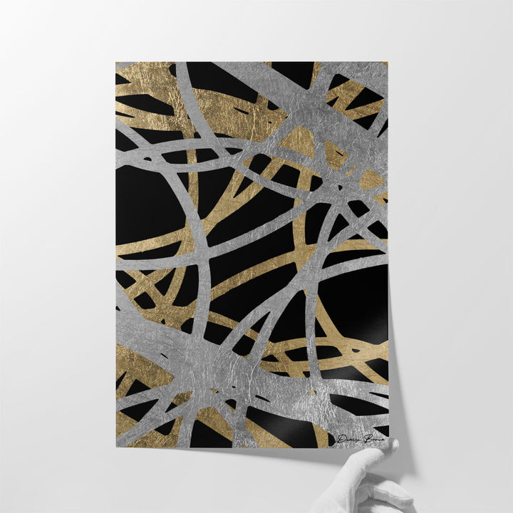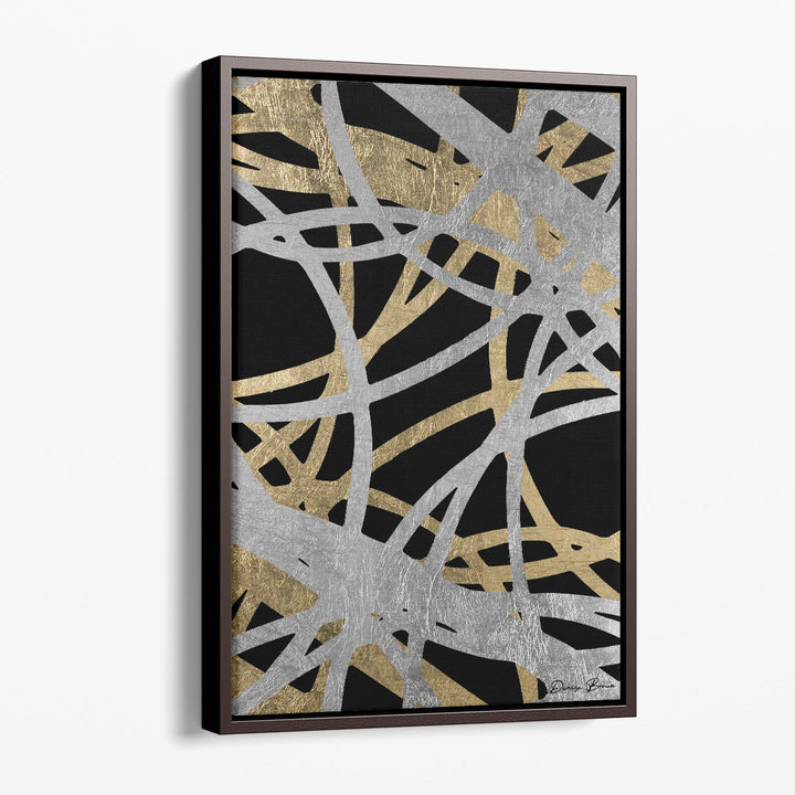 This geometric abstract design in black, brown, and gray offers a striking modern composition with balanced shapes and refined visual harmony.