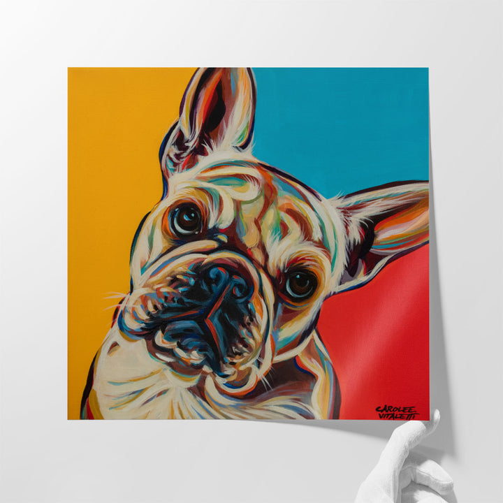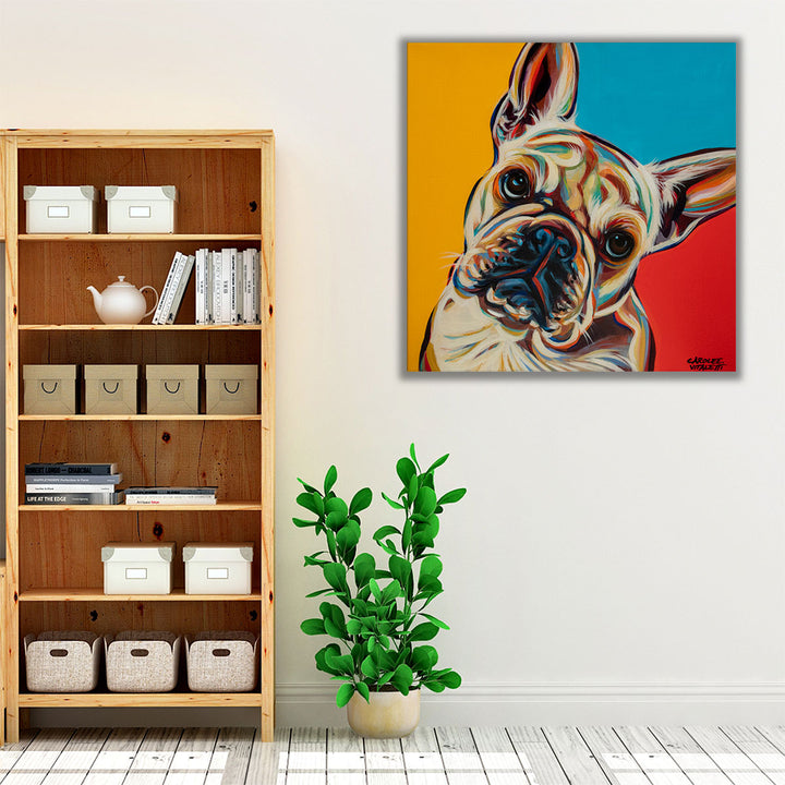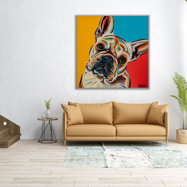 This vibrant artwork features a charming French bulldog, showcasing bold colors and a playful design style that adds personality to any space.
