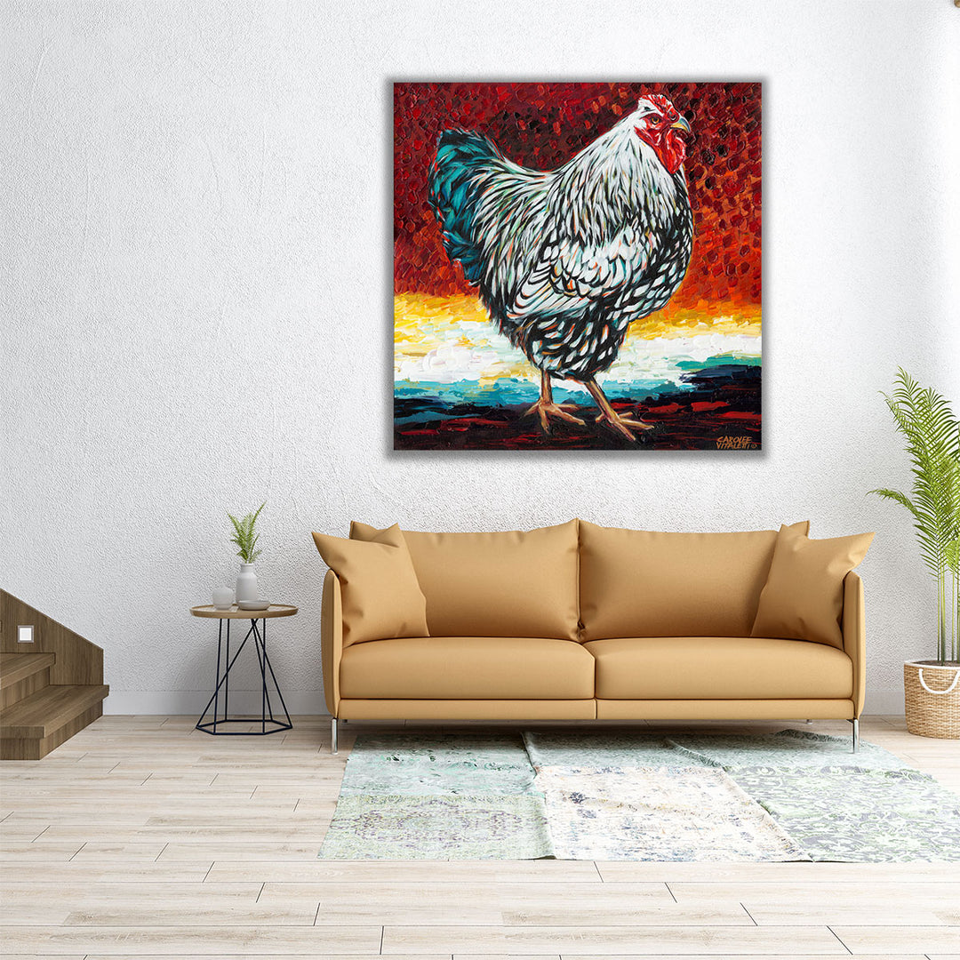 This charming artwork captures the whimsical essence of a chicken with intricate details and playful artistry.