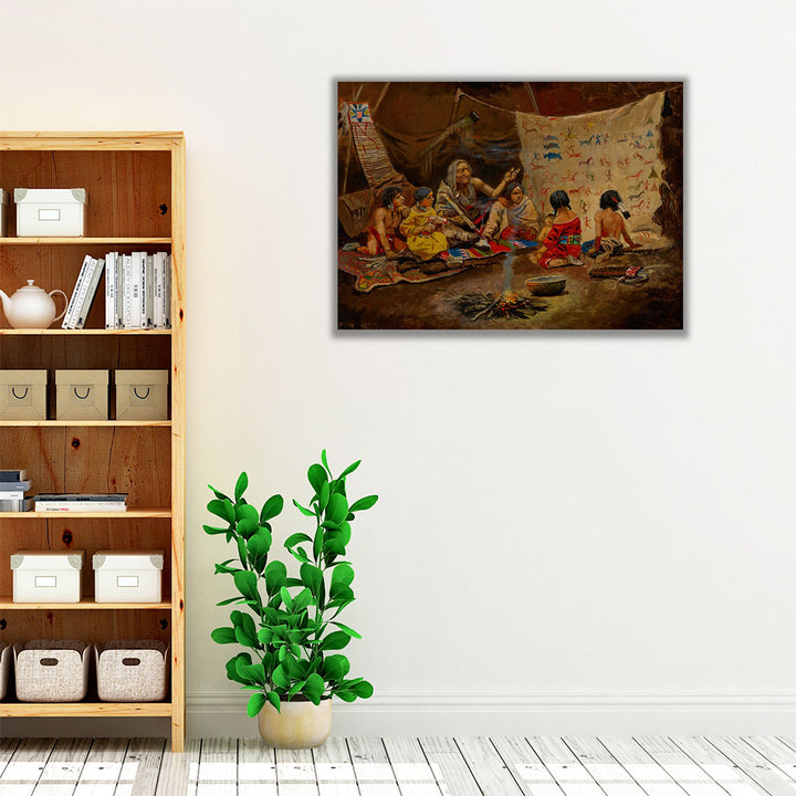 The Kindergarten, The Story Teller Canvas Art Print by Charles Marion Russell.