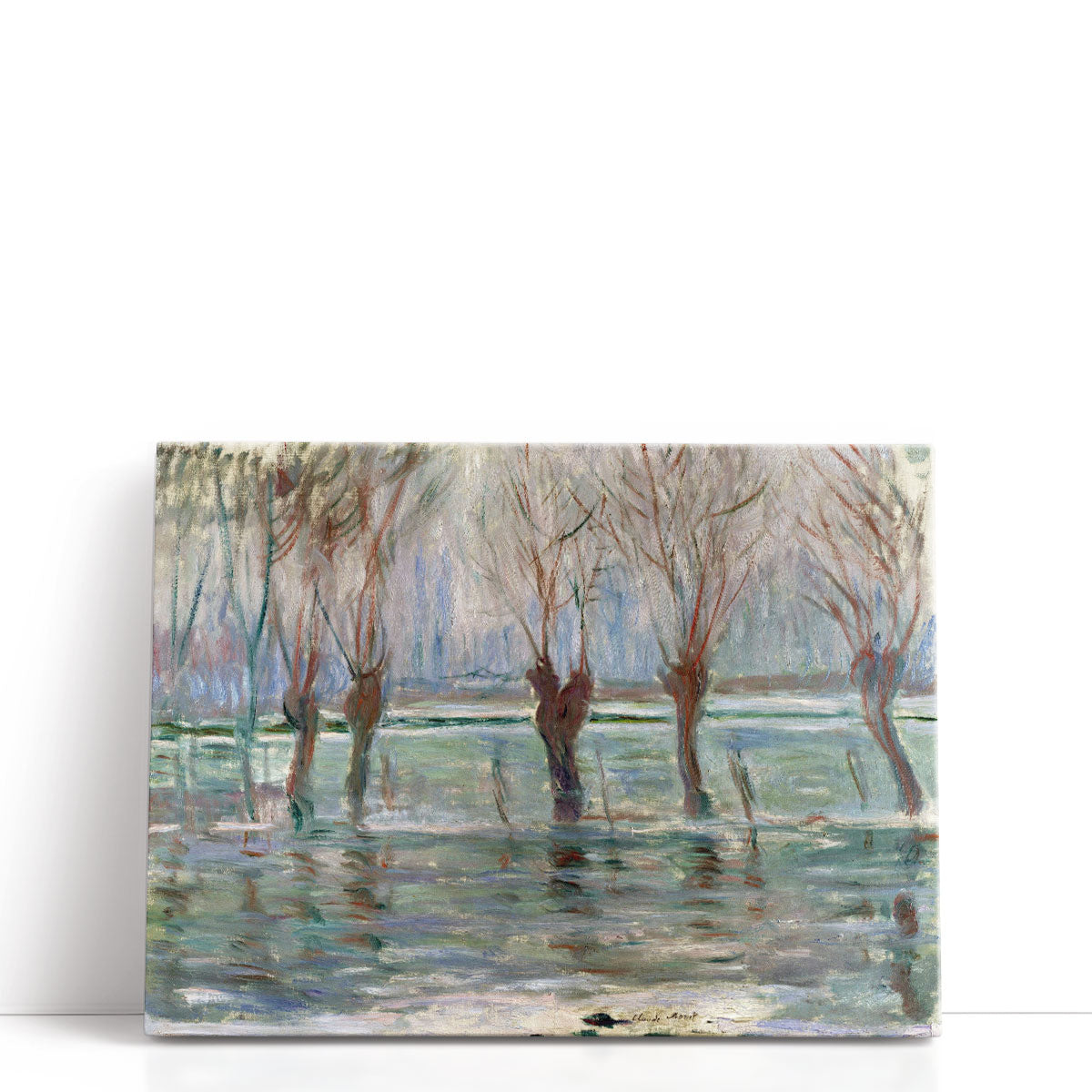 This scenic captures the dramatic floodwaters with Monet's characteristic brown and neutral tones, depicting a poignant waterland flood scene.