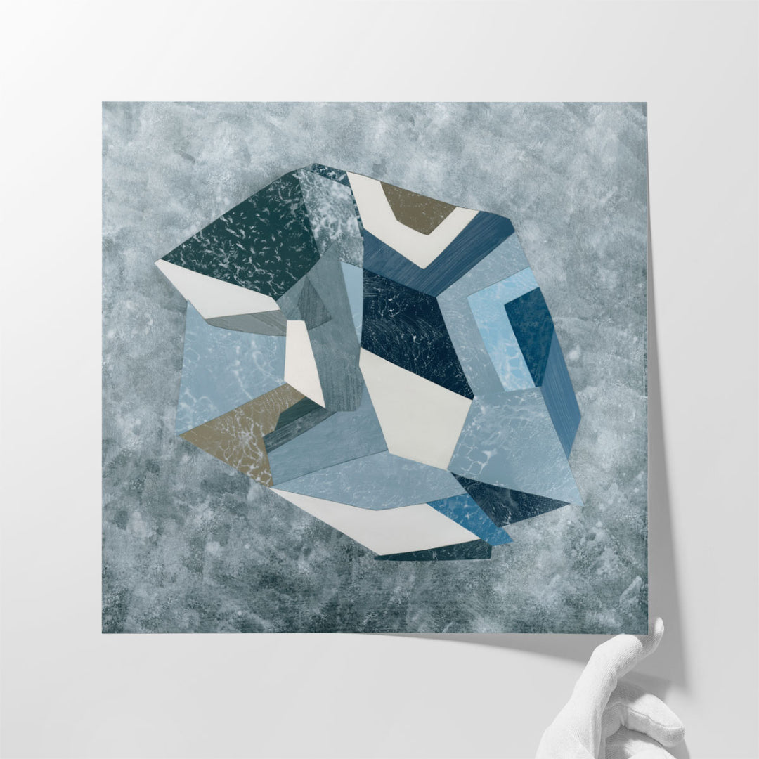 This abstract piece features mesmerizing grey and blue tones, evoking a serene yet dynamic celestial-inspired design.