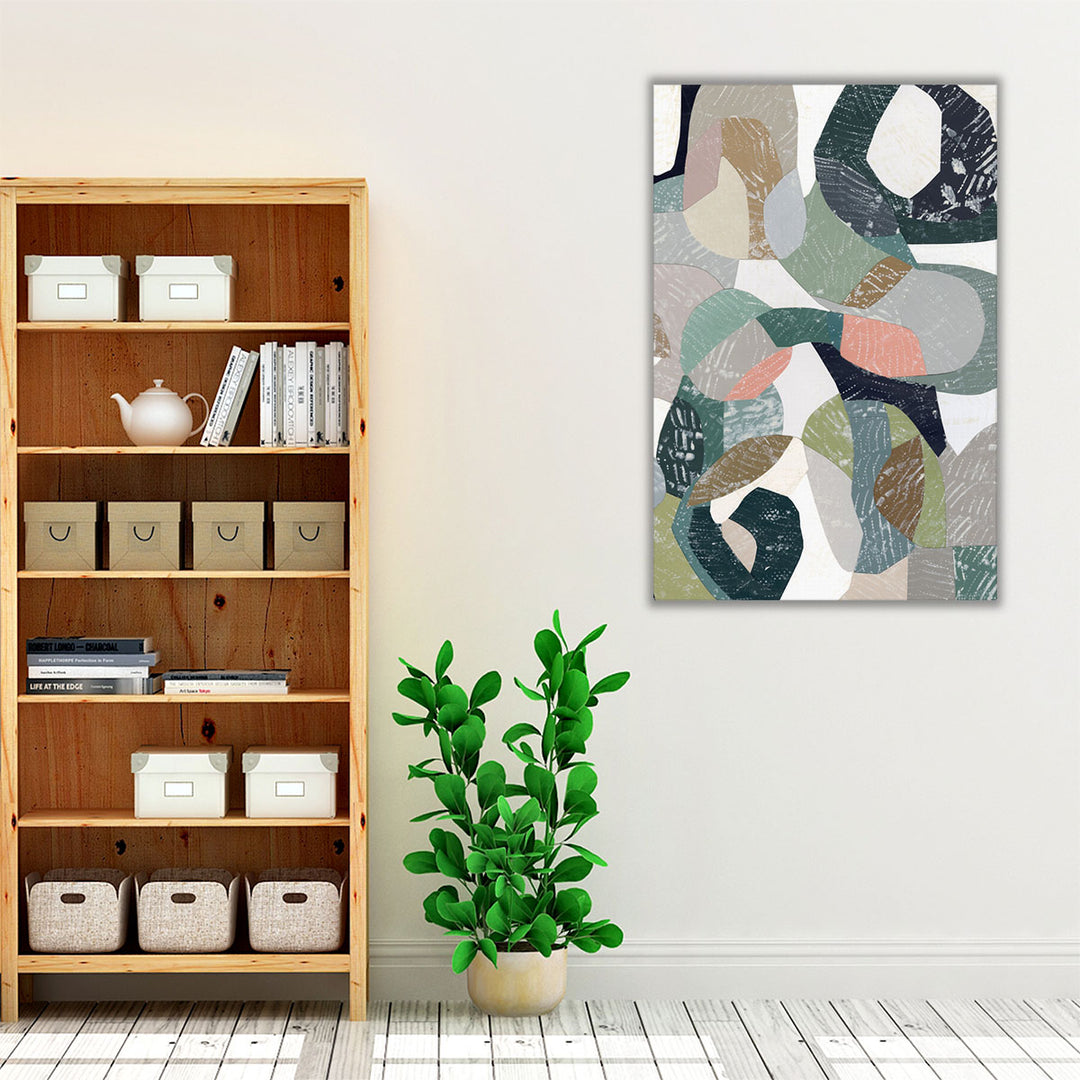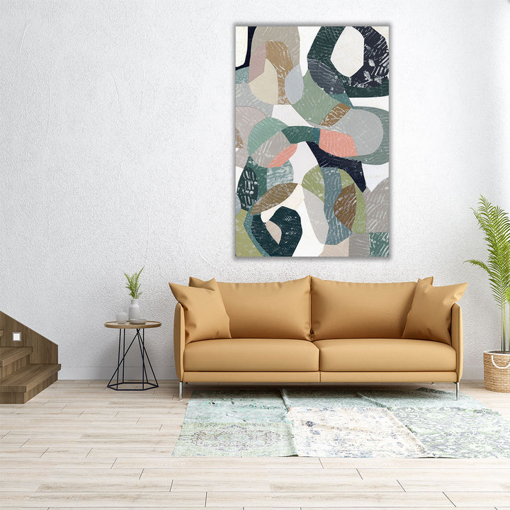 Green Textured Shapes Wall Art, Neutral Abstract Canvas Decor, Oversized Bedroom Artwork | Settle Me Down II