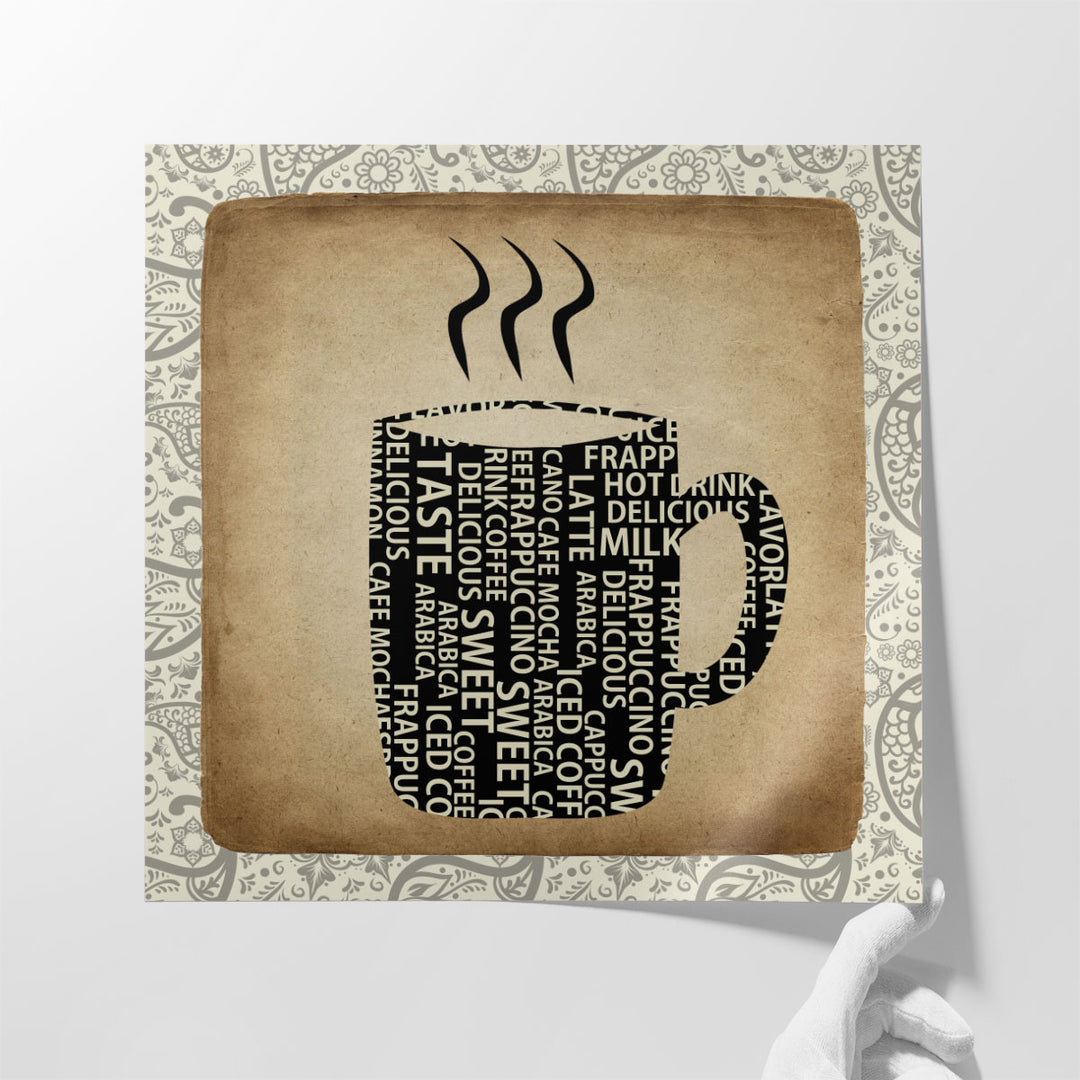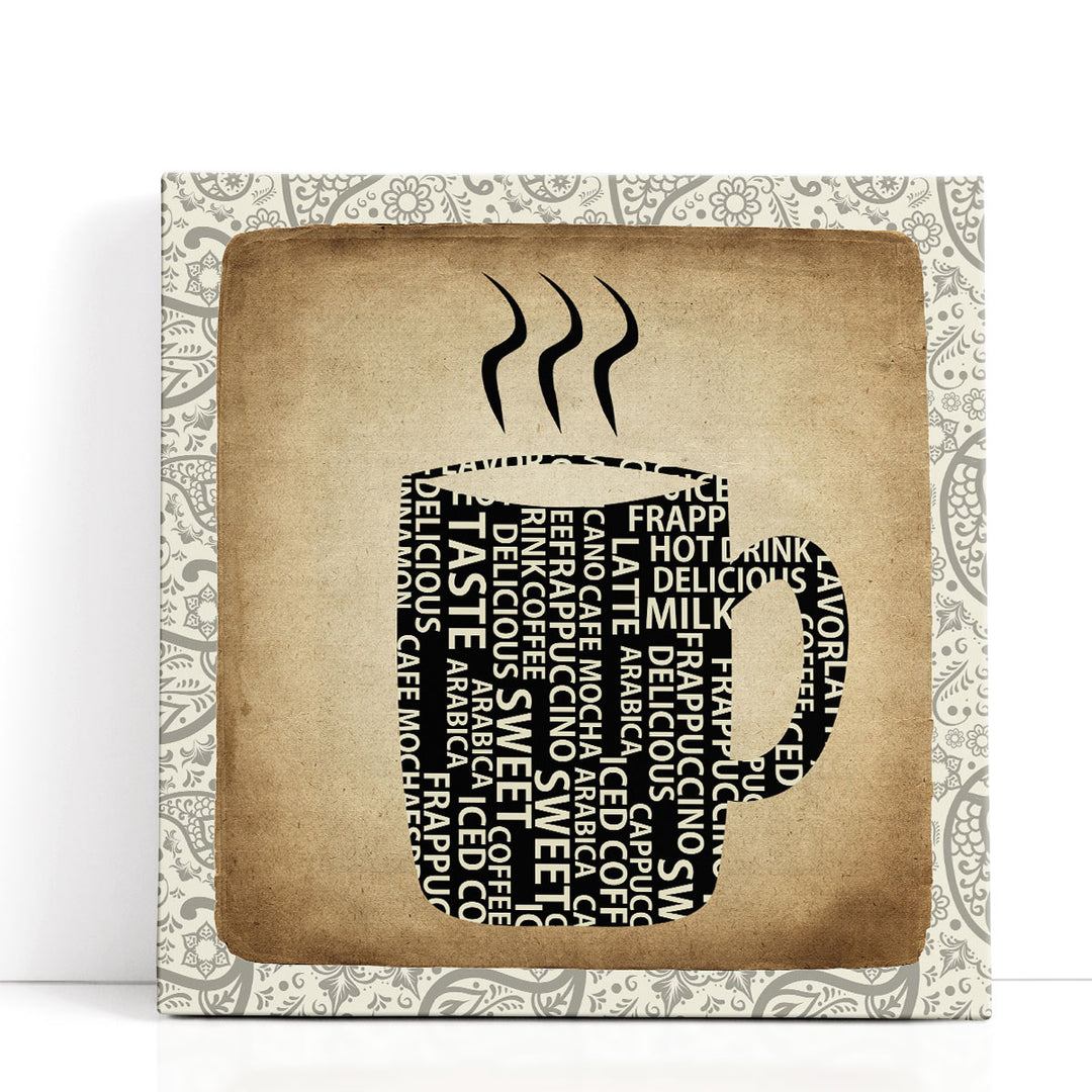 Retro Coffee Canvas Art, Typography Abstract Wall Art, Big Dining Room Paintings | Coffee Paisley 1