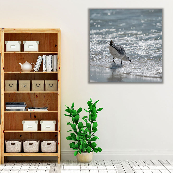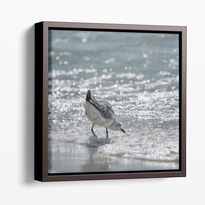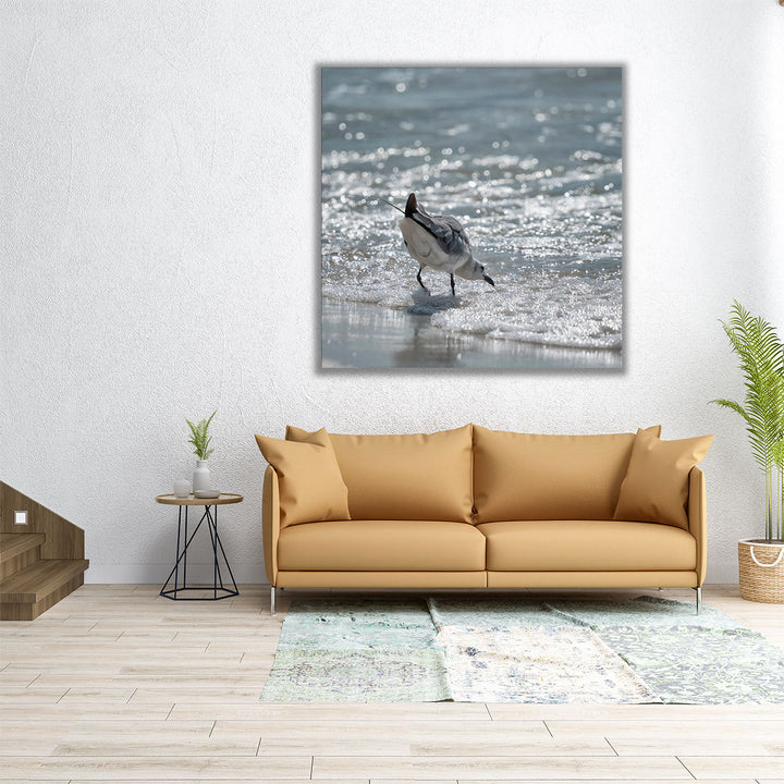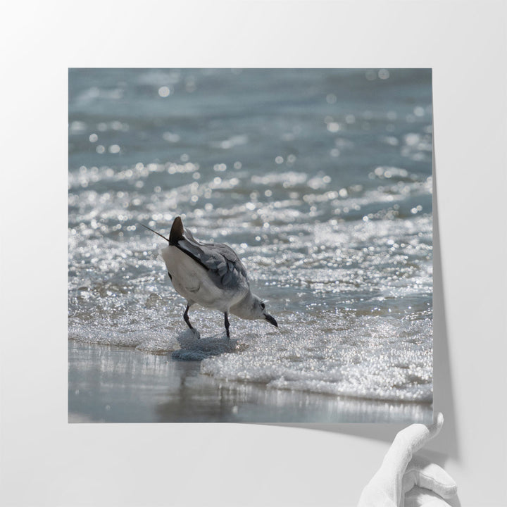 The artwork showcases a bird in a scenic, animal-inspired style with a focus on gray and neutral tones.