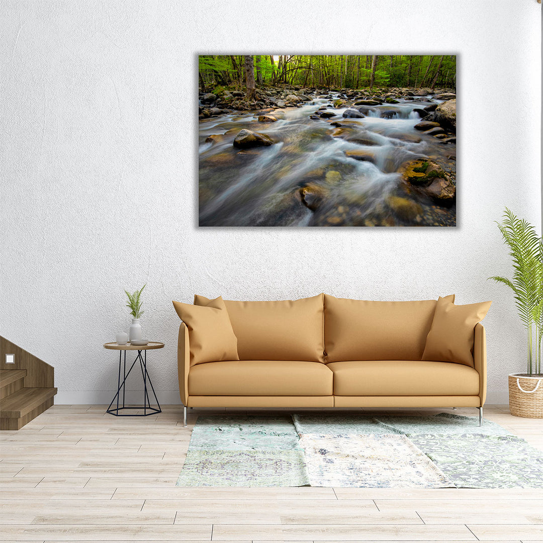 Add warmth and depth to your home with golden wall art that captures the glow of sunlight over rugged terrain. Rich textures in the brown rock prints contrast beautifully with surrounding greenery, creating a natural yet striking scene. Perfect as a focal point, this large landscape canvas art for living room décor blends elegance with the beauty of the outdoors.