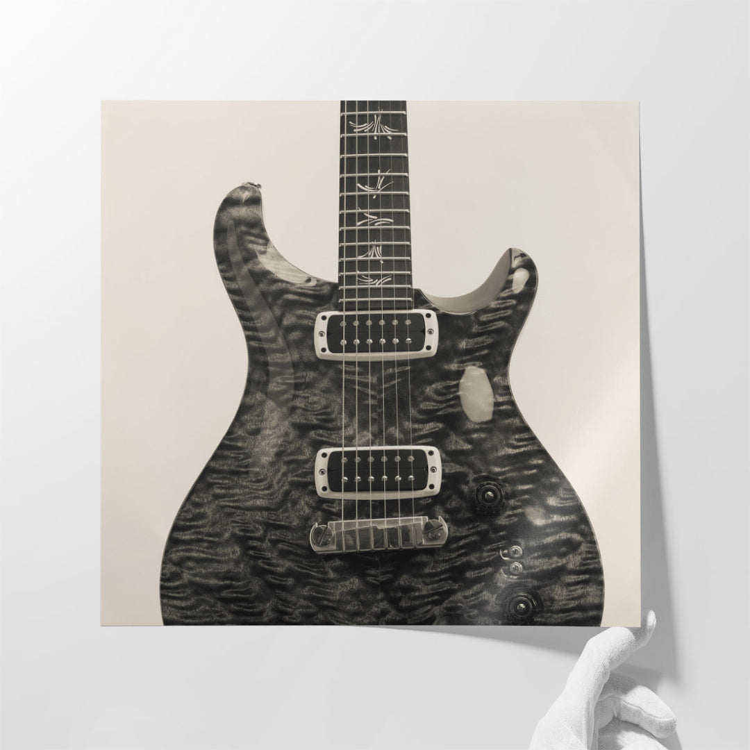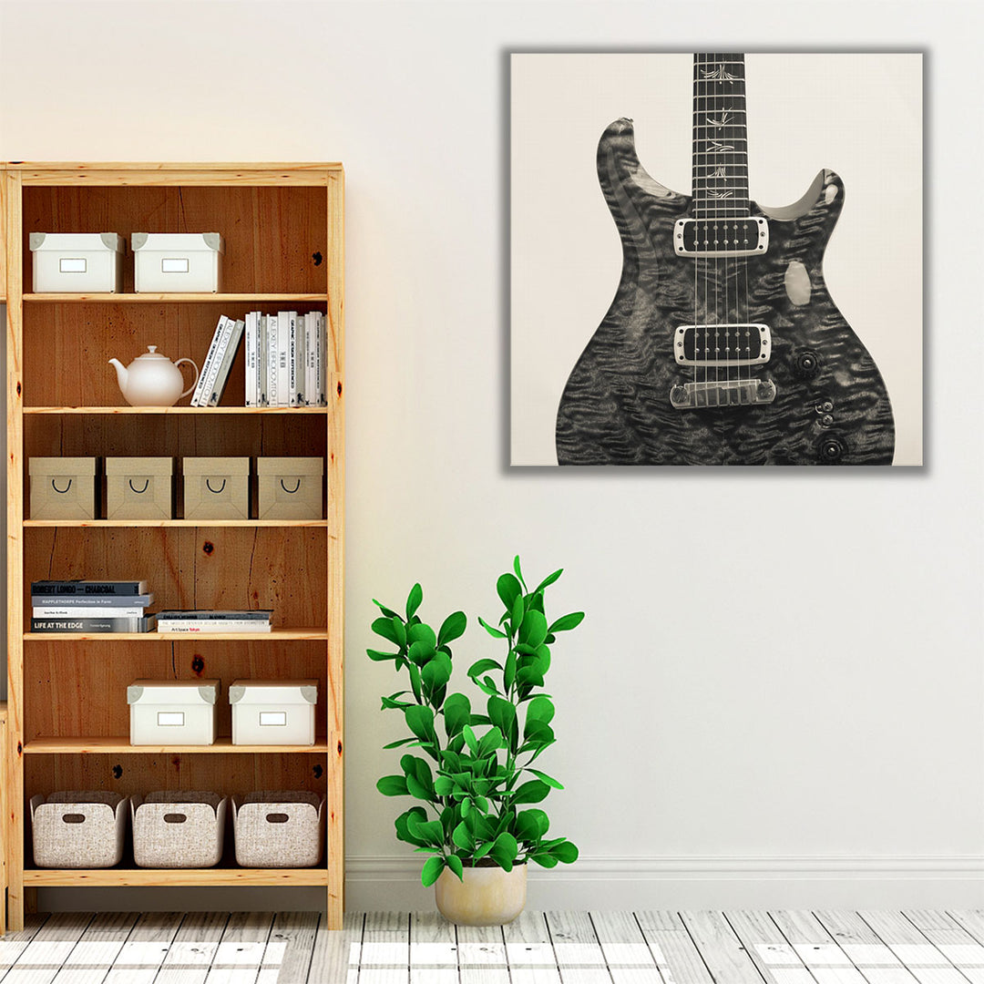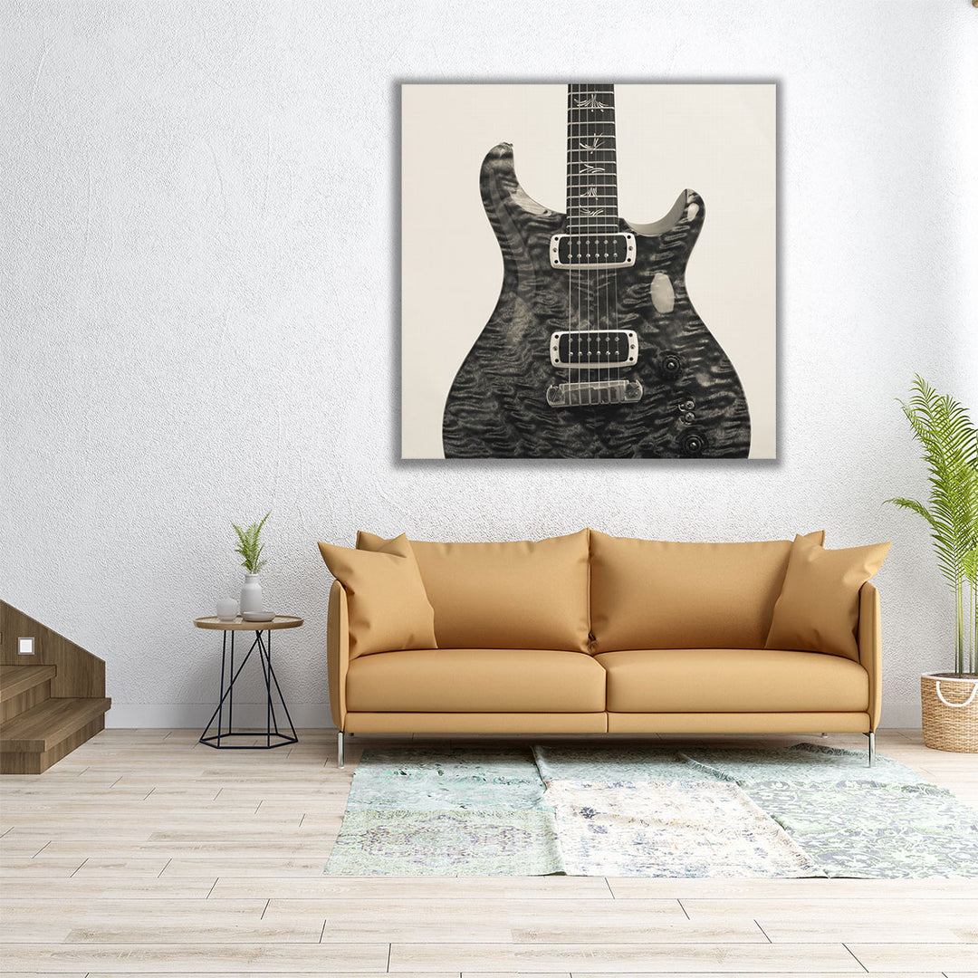 This artwork beautifully captures the essence of a guitar, blending vibrant details with a dynamic artistic style.