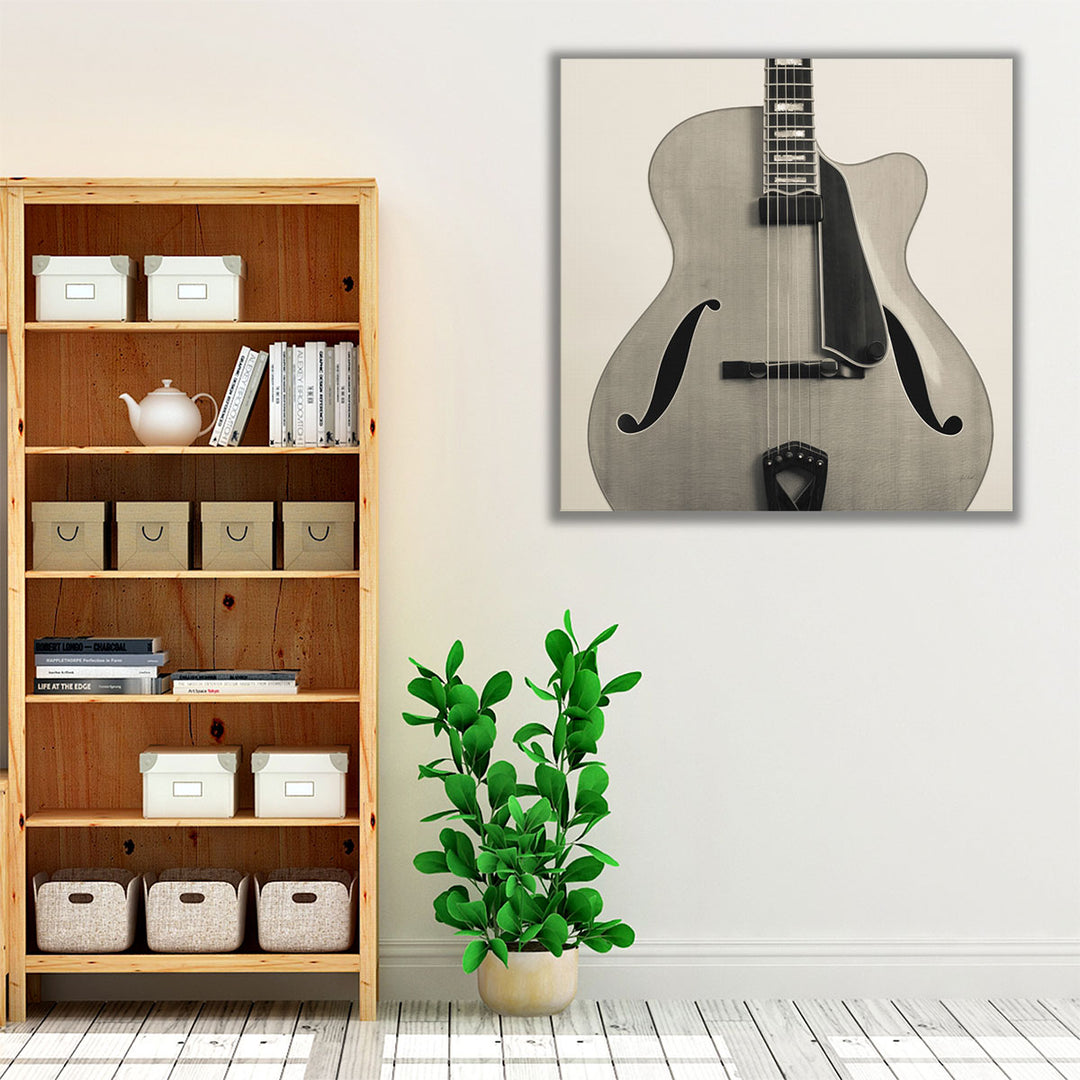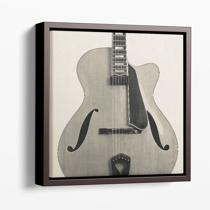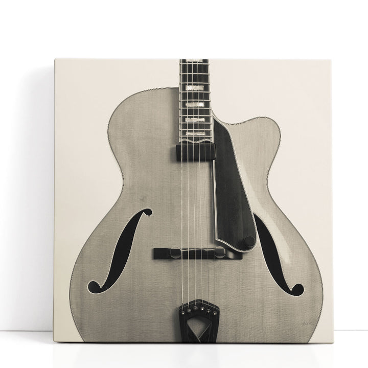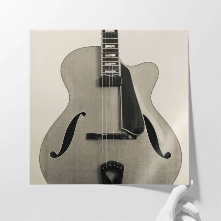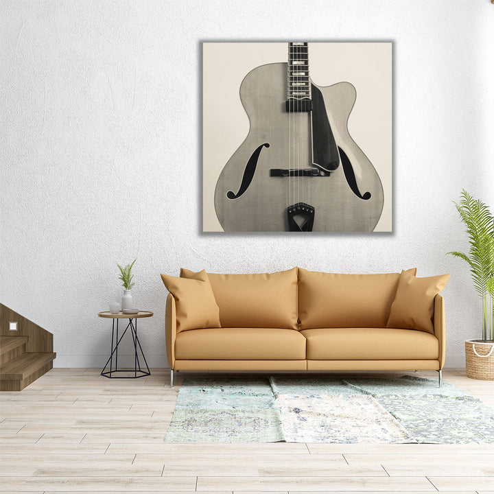 This piece captures the intricate details of a guitar, blending modern realism with dynamic tones and textures for a visually striking presentation.