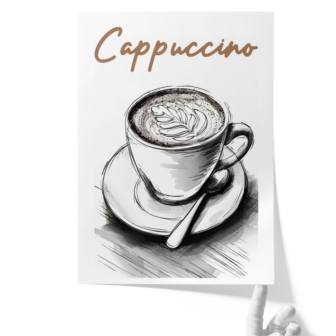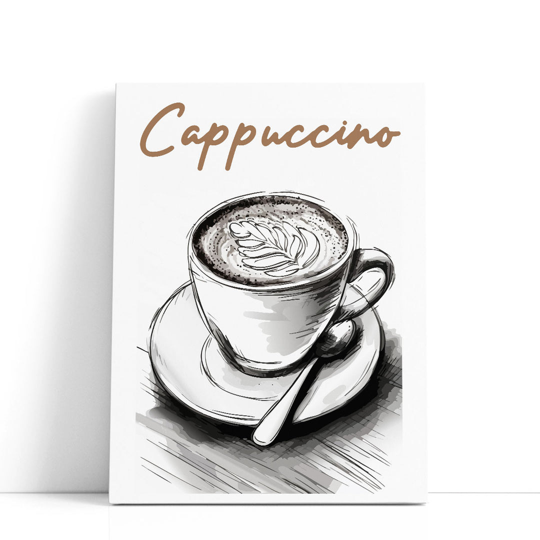 Coffee Art Print, Modern Typography Wall Art, Huge Black and White Canvas Prints for Kitchen | Cappuccino