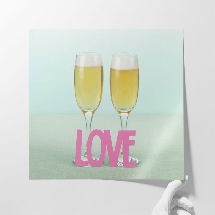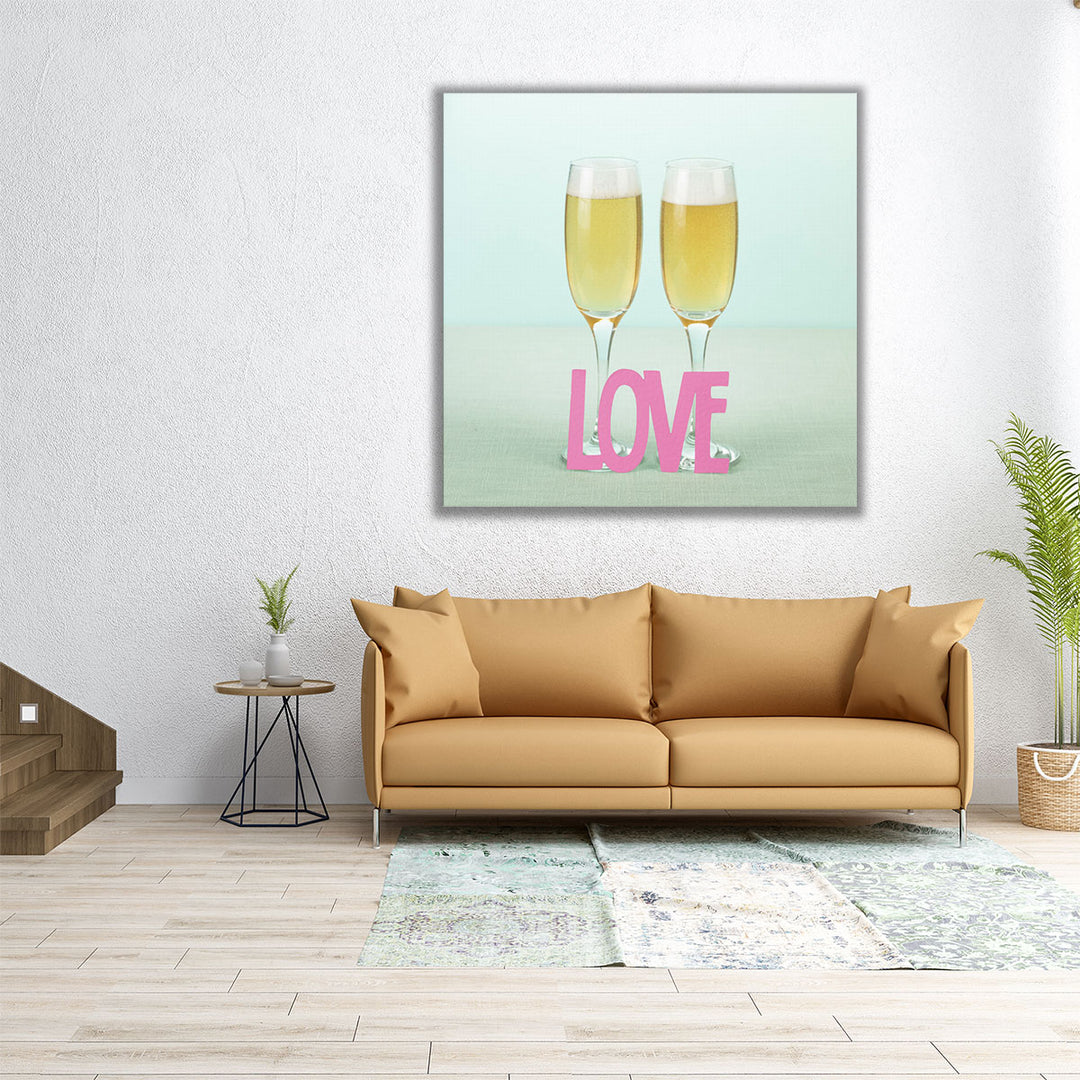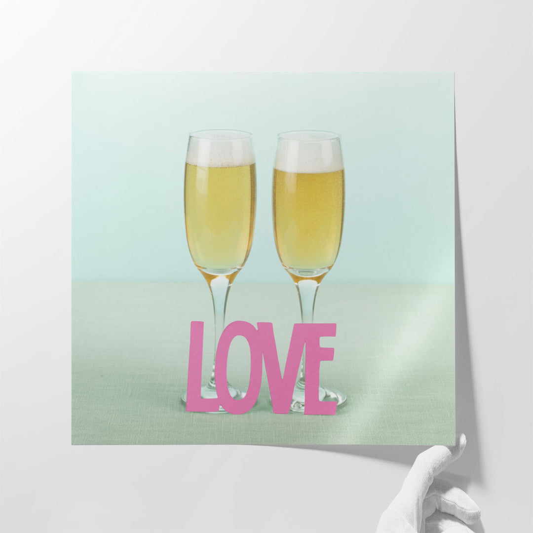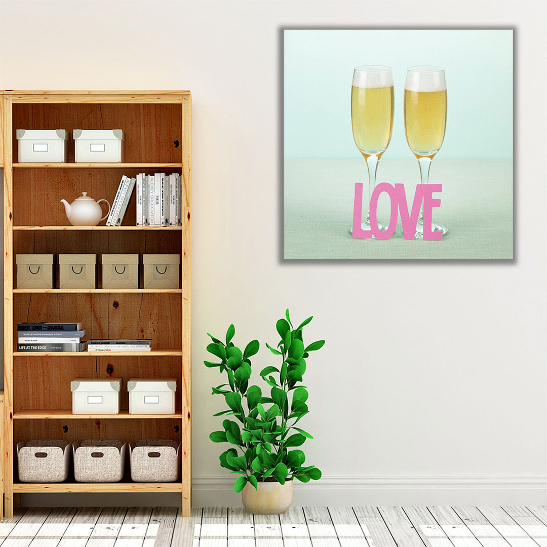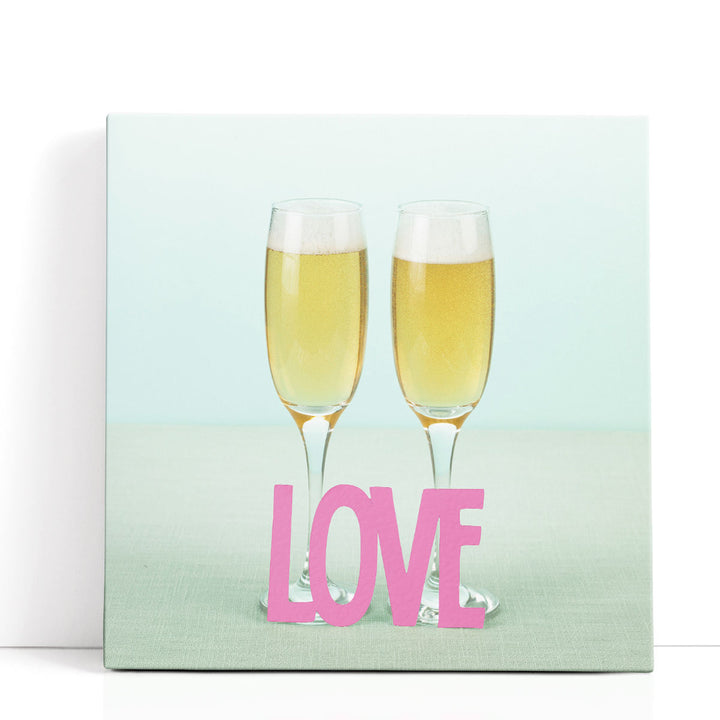 Champagne Glasses with the Letters Love - Canvas Print Wall Art