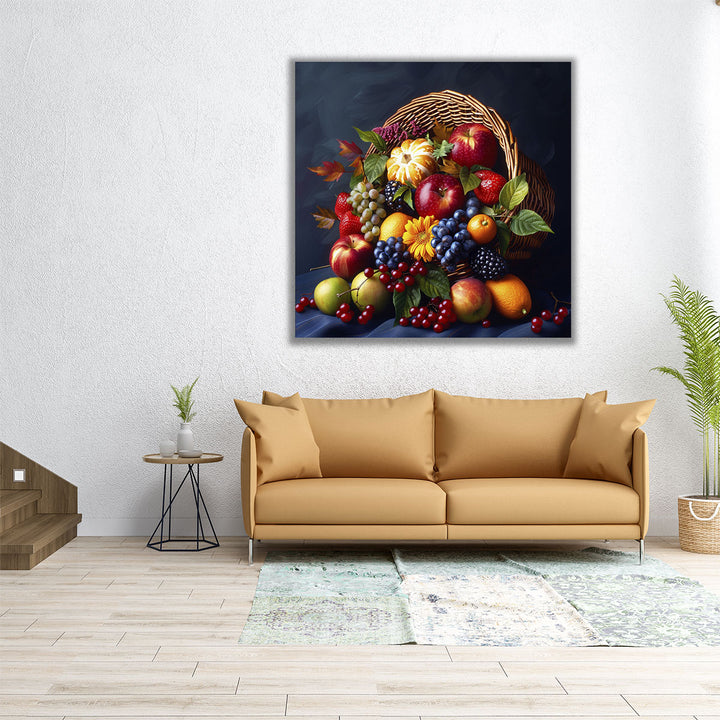 Colorful Fruit Wall Art, Modern Kitchen Wall Decor, 24x24 Still Life Prints | Cornucopia