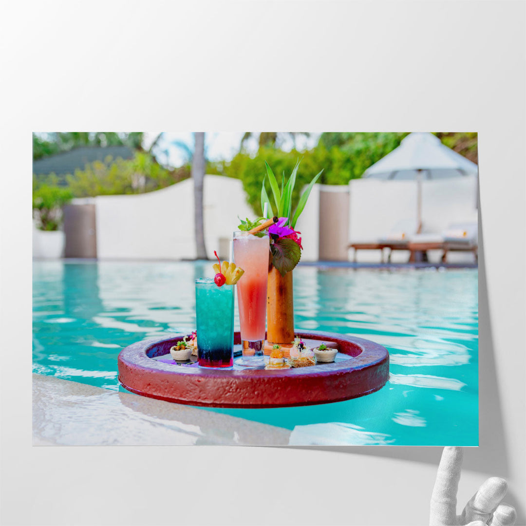 Floating Tray in Swimming Pool With Cocktails and Snacks - Canvas Print Wall Art