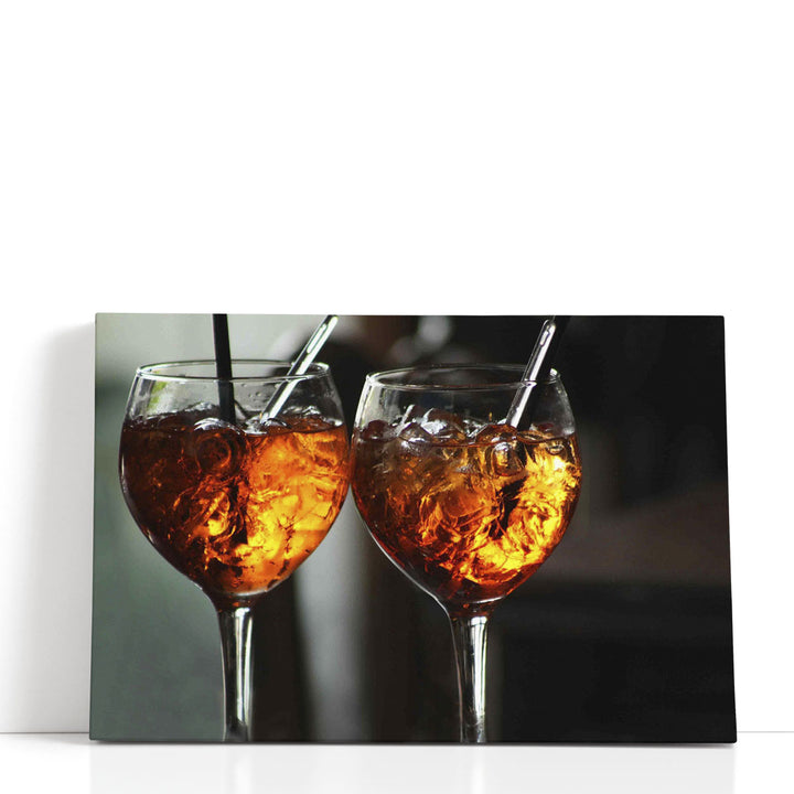 Warm amber tones dance in two crystal glasses filled with rich brown liquor. The glass reflections and soft gray backdrop create a luxurious still life prints display. These photography prints add refined depth to any wall, making exceptional dining wall art above a buffet or bar cart.