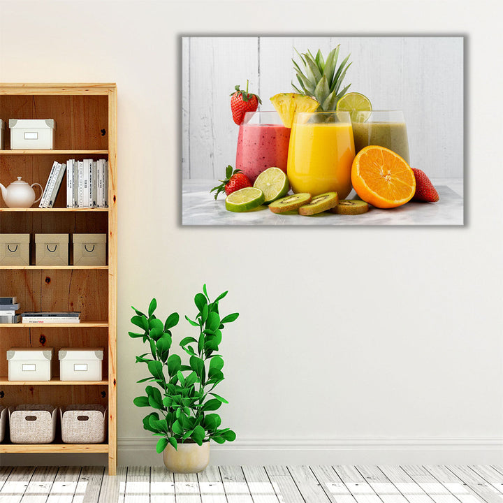 Fruit Smoothies with Their Ingredients Canvas Print.