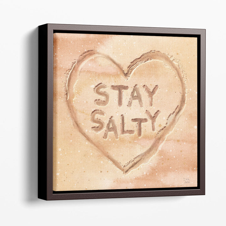 This serene artwork combines typography with a heart and sand, capturing the essence of a peaceful beach day.