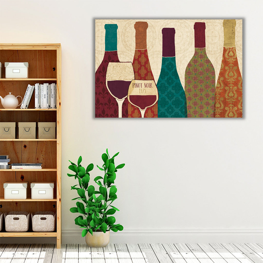 Bohemian Wine Wall Decor, 24x16 Still Life Kitchen Prints | Wine Collage I with Glassware