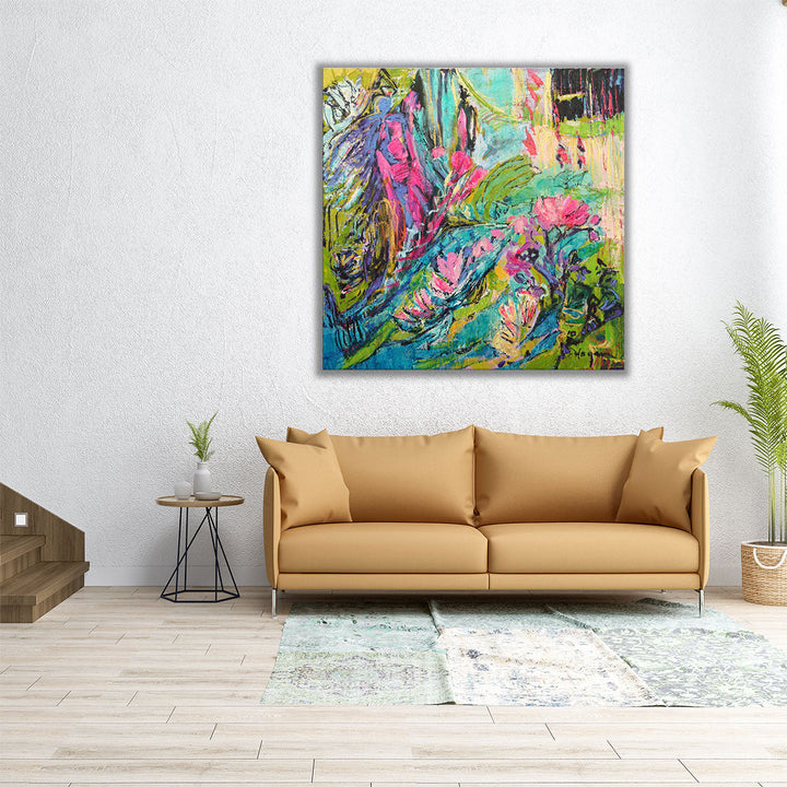 Experience an abstract floral art piece with vibrant colors, designed to bring a touch of elegance and creativity to any space.