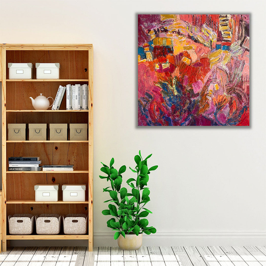 A vibrant abstract artwork of a floral garden, this piece brings a colorful and artistic touch to any space with its expressive art style.