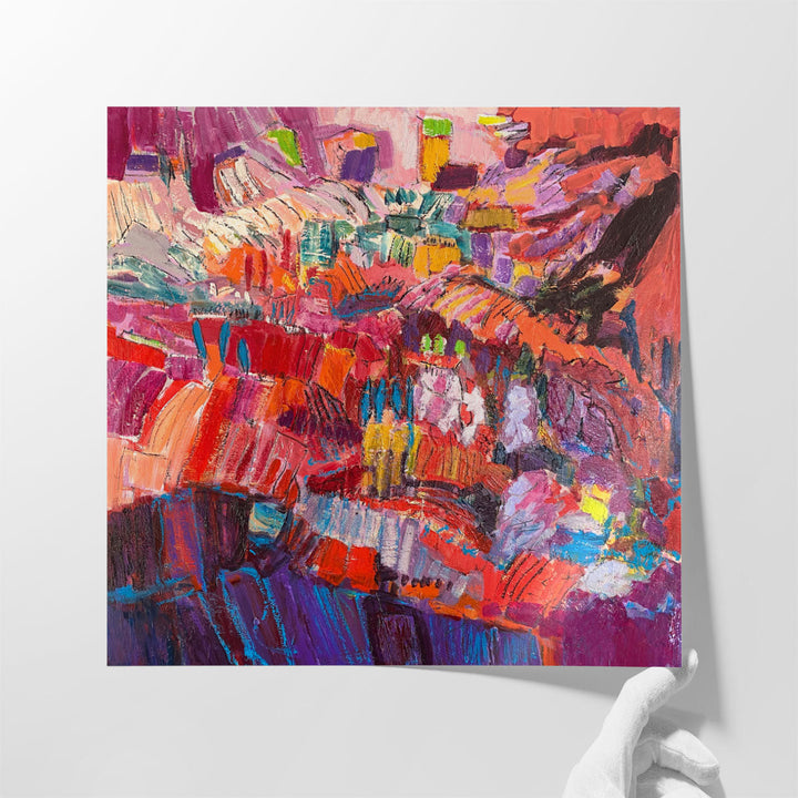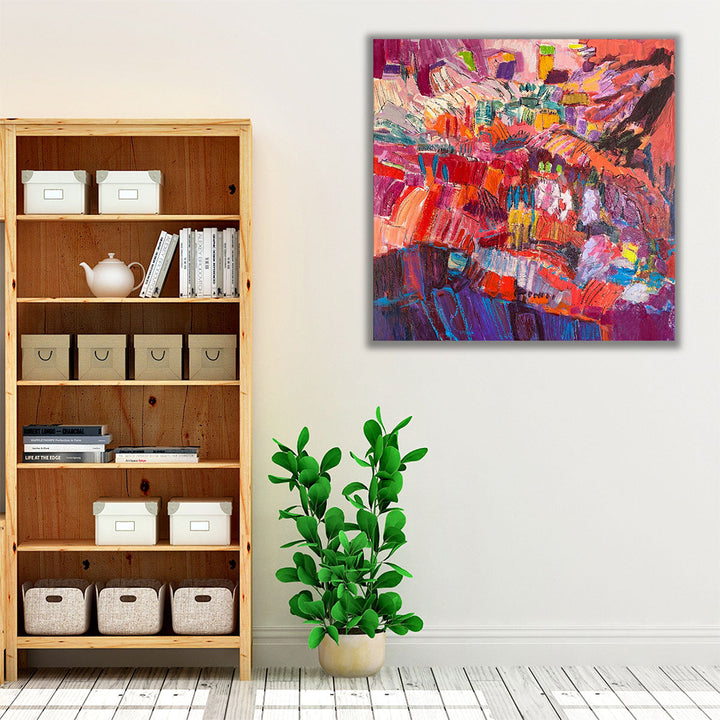 Adorn your living room with this abstract floral art piece, showcasing a vibrant garden scene that adds elegance and color to your space.