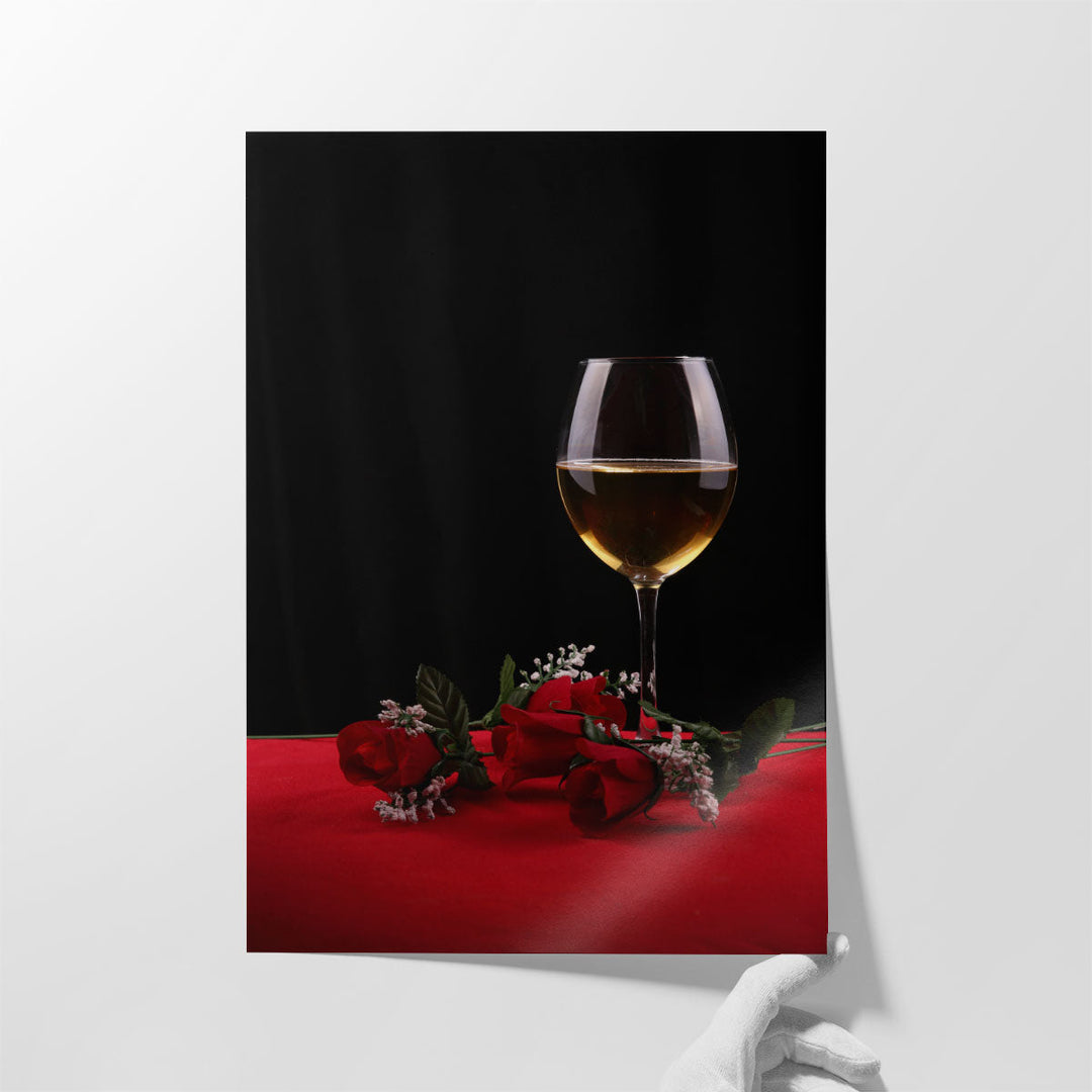 Roses and a Glass Of Wine - Canvas Print Wall Art