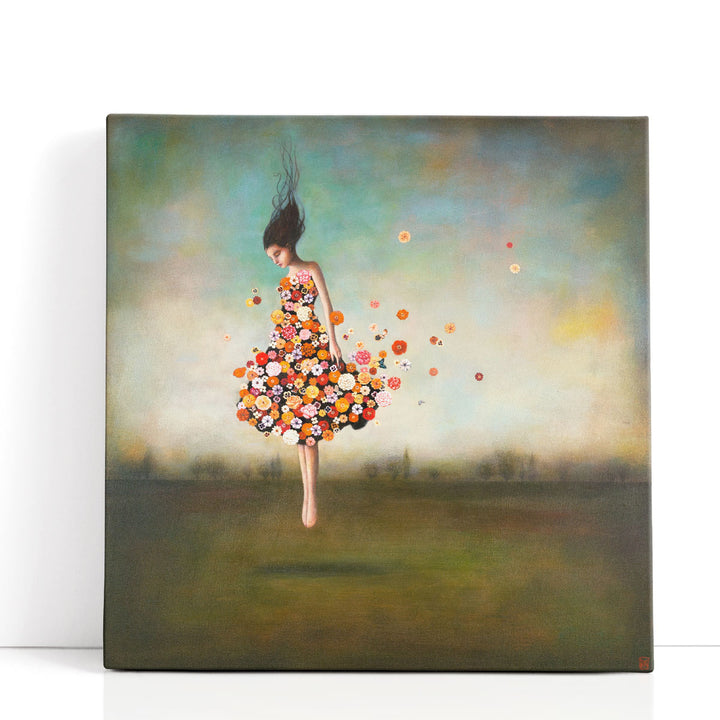 This colorful piece depicts a graceful lady in a vibrant floral dress, blending whimsy and elegance with imaginative detail.
