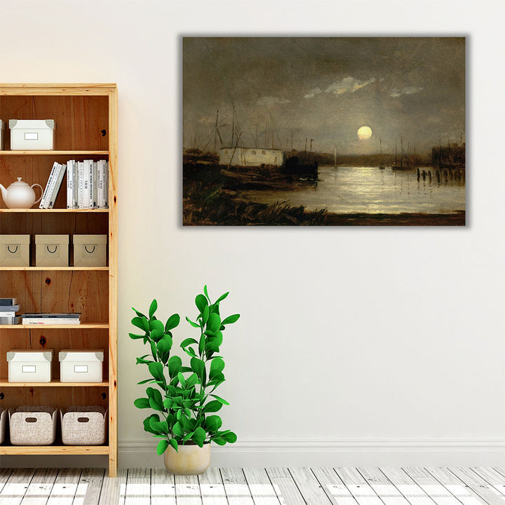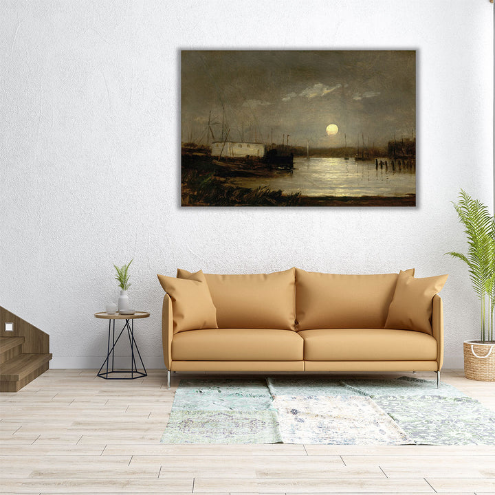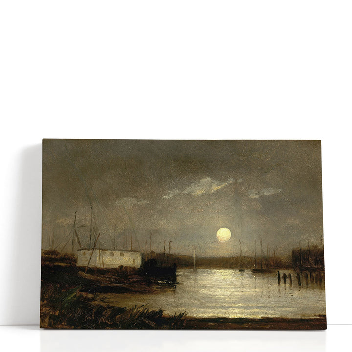 Wharf Scene with Full Moon and Masts of Boats Giclee Print by Edward Mitchell Bannister.