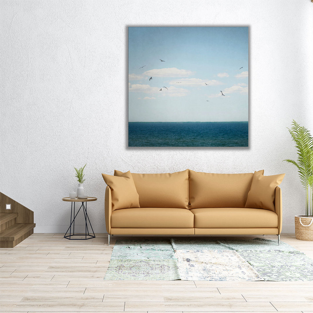 Radiating a tranquil vibe, the artwork embraces motivational themes in a serene blue palette, creating a calming presence.