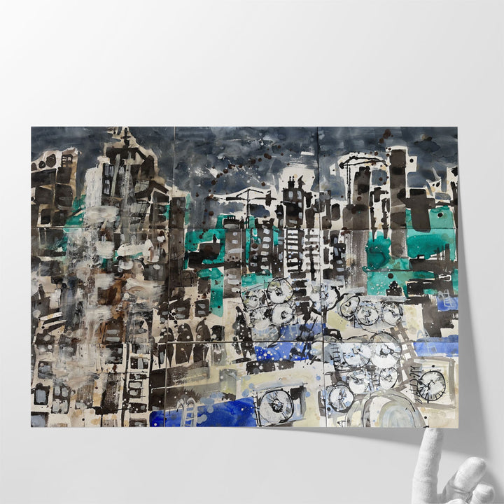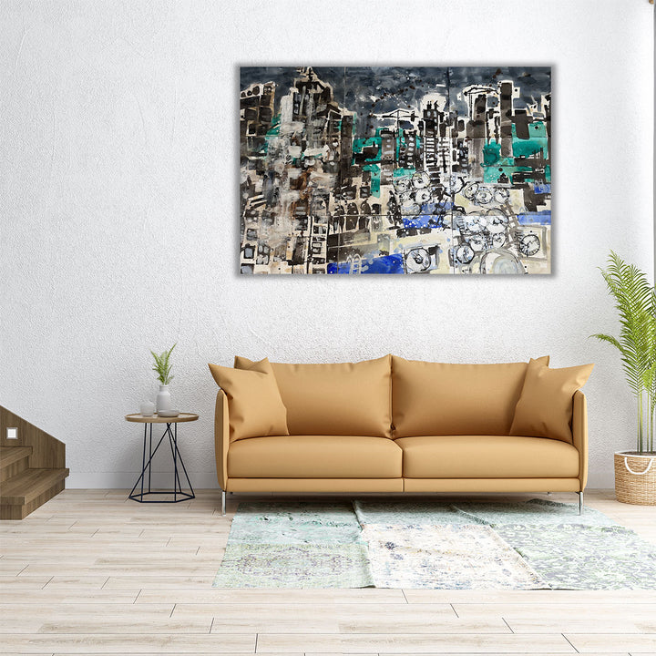A striking abstract design with neutral and black hues, offering a sophisticated touch to any modern space.