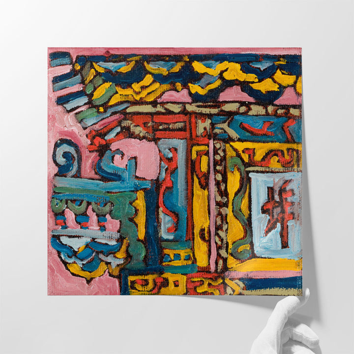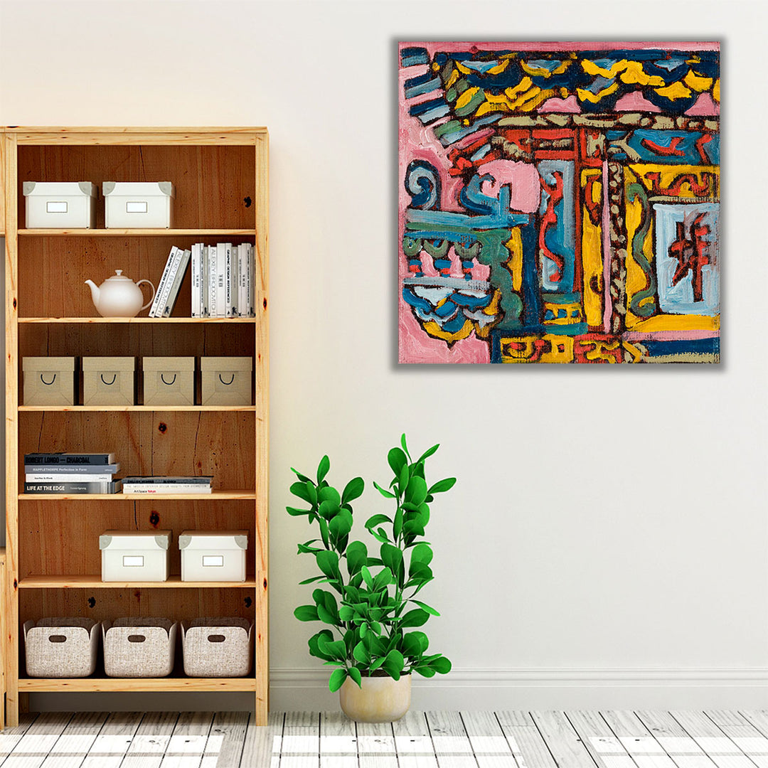This abstract artwork brings dynamic shapes and vibrant hues, creating a visually striking composition perfect for modern interiors.
