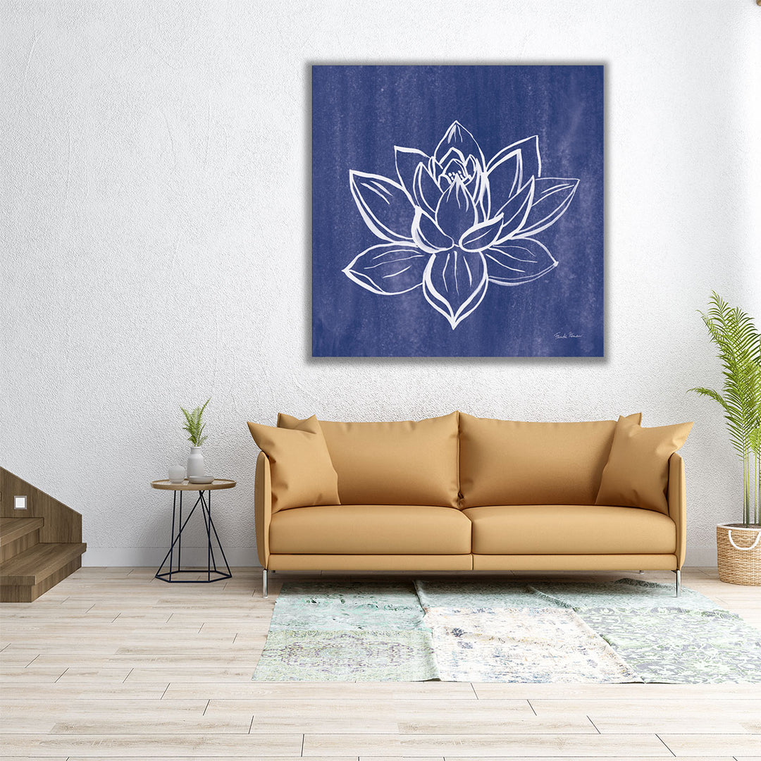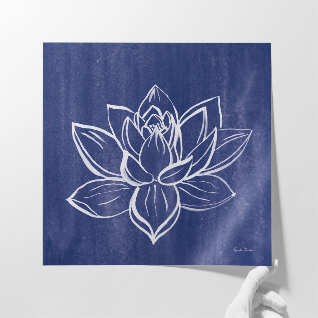 This artwork showcases a serene lotus flower in white and blue, exuding peace and tranquility, perfect for modern art lovers.